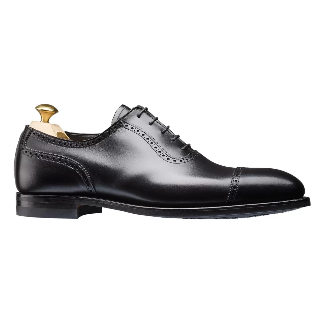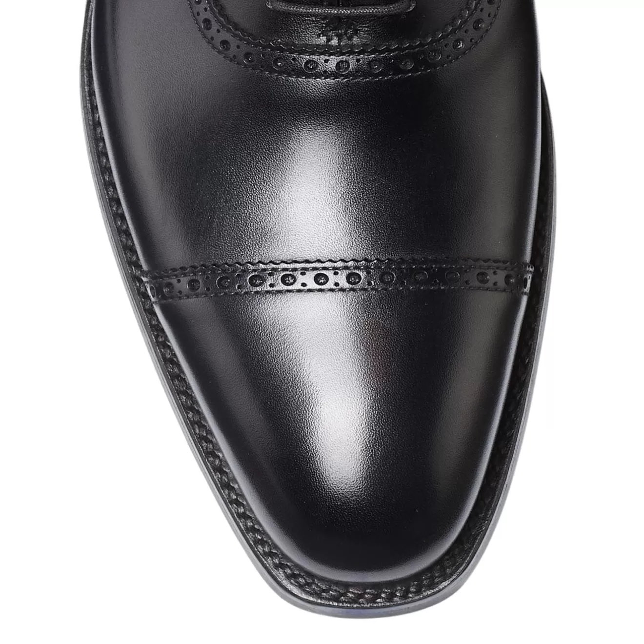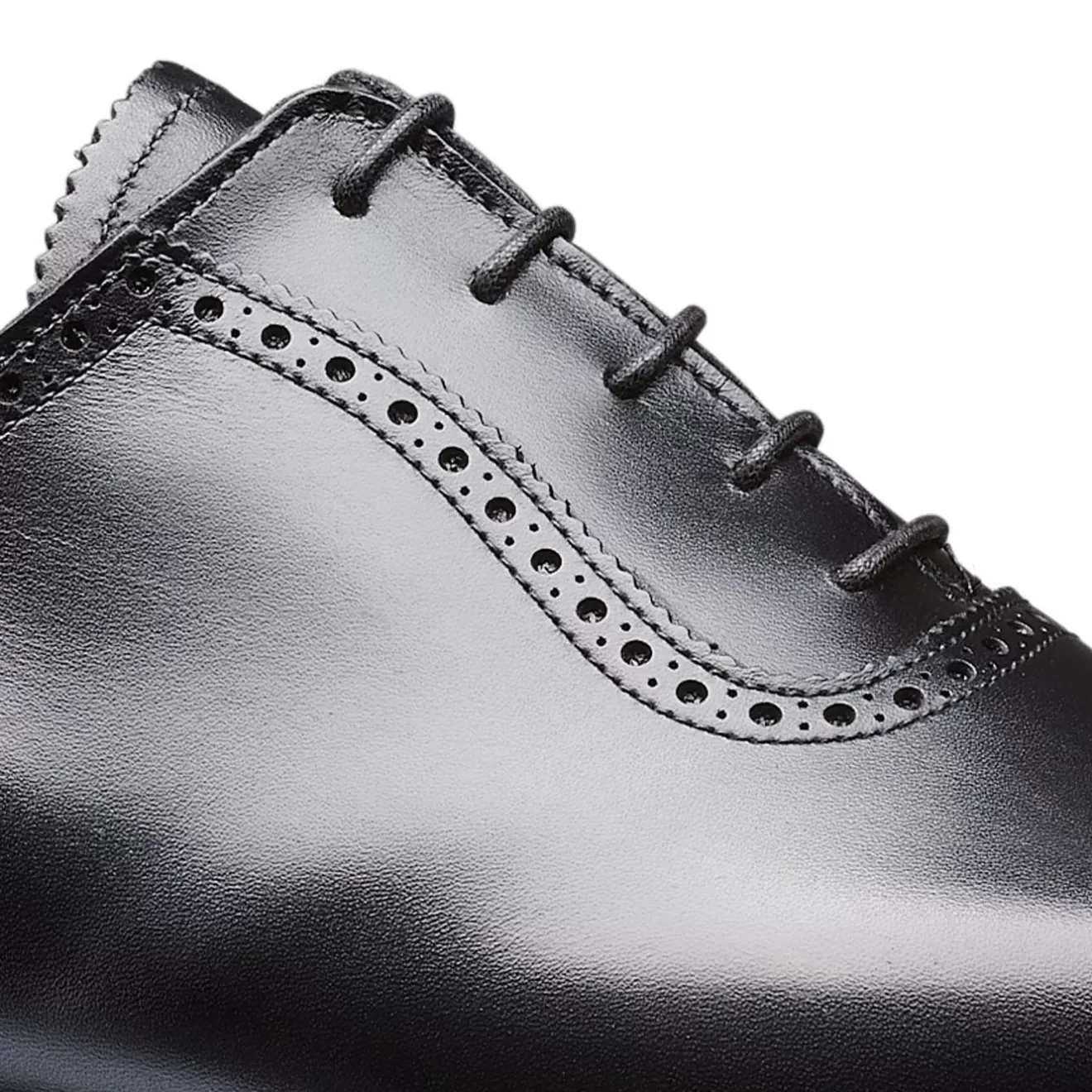 Albany 4, an oxford shoe with a u-throat, under-laid facing and punched toe cap. Made from the finest black calf, featuring City rubber soles. From the Hand Grade collection.
