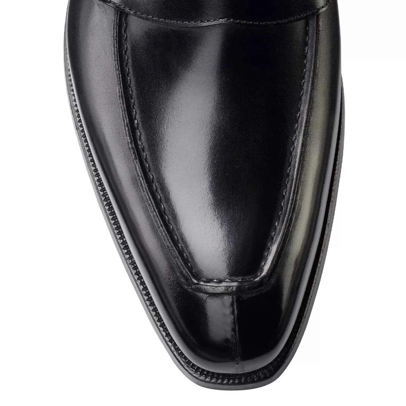 Bury 2, a hand-stitched loafer with raised apron made from the finest black calf leather. The uppers are expertly stitched by our highly skilled hand sewer to give this style the utmost finesse and quality. From the Hand Grade collection.