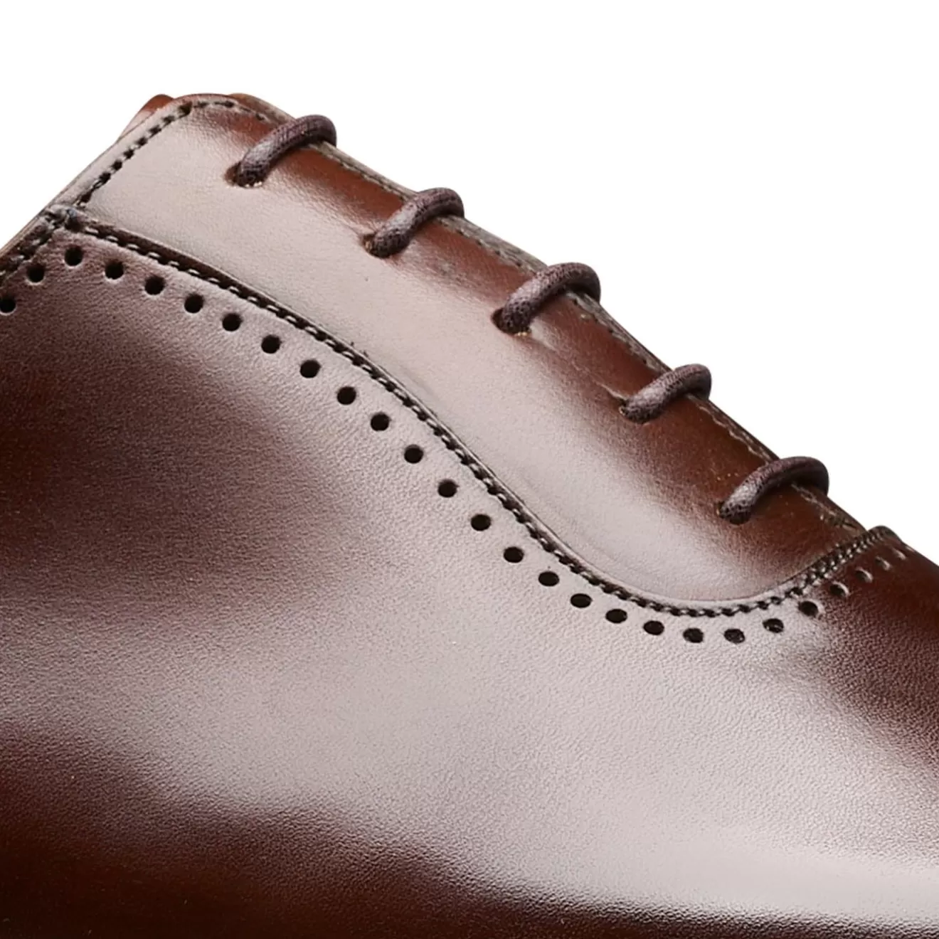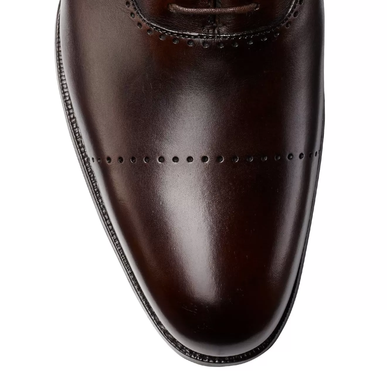 Courtenay, an oxford shoe with a subtle punched design made from the finest dark brown antique calf leather and bark tanned single leather soles. From the Hand Grade Collection.