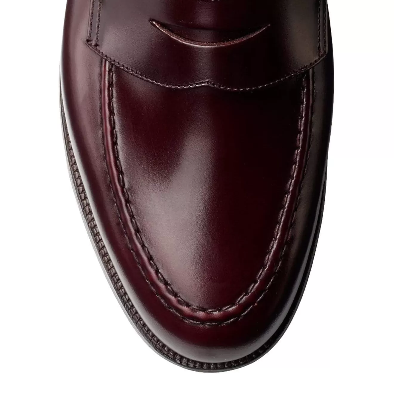 Boston, a classic penny loafer made from the finest burgundy cavalry calf leather with a single leather sole. From the Men’s Main Collection.
