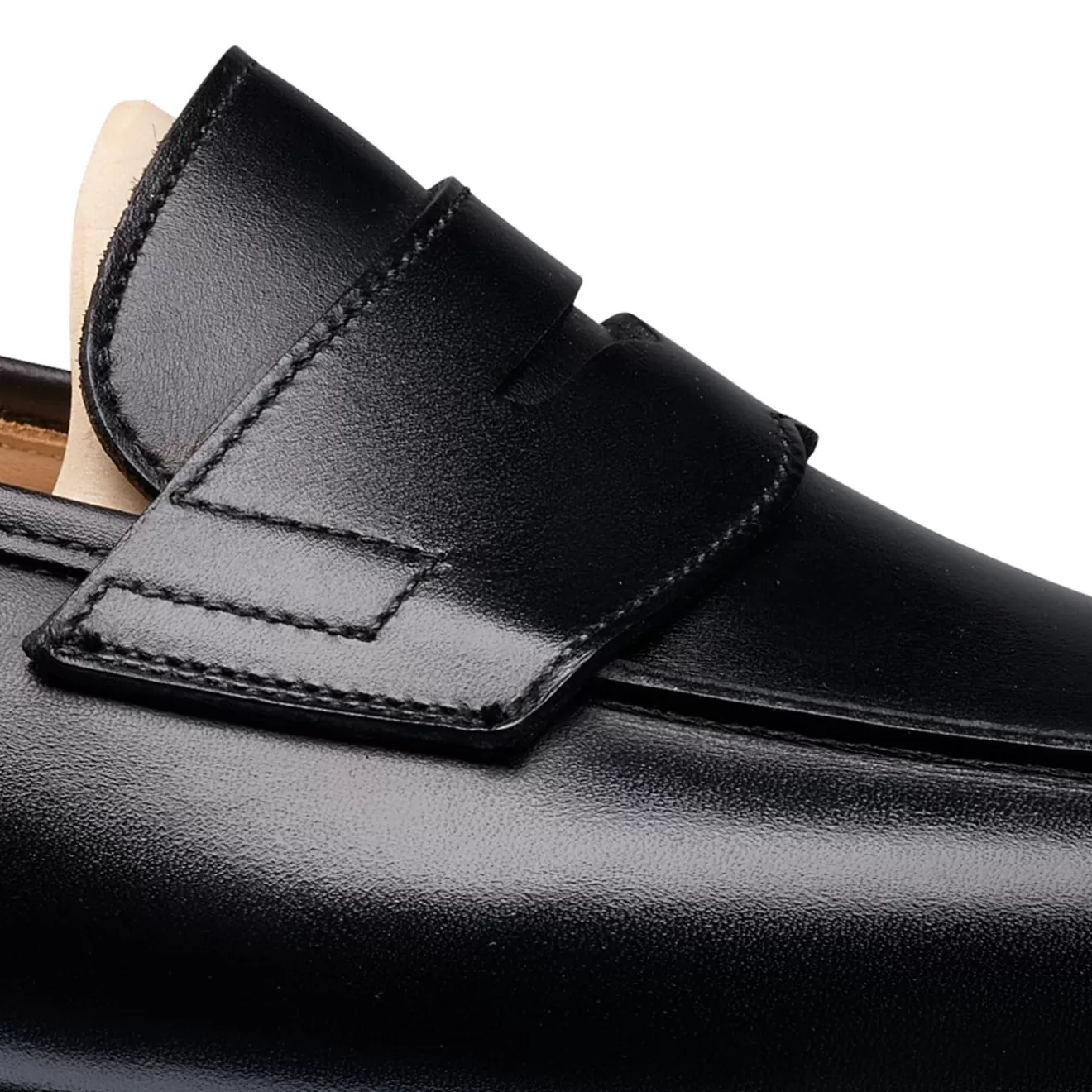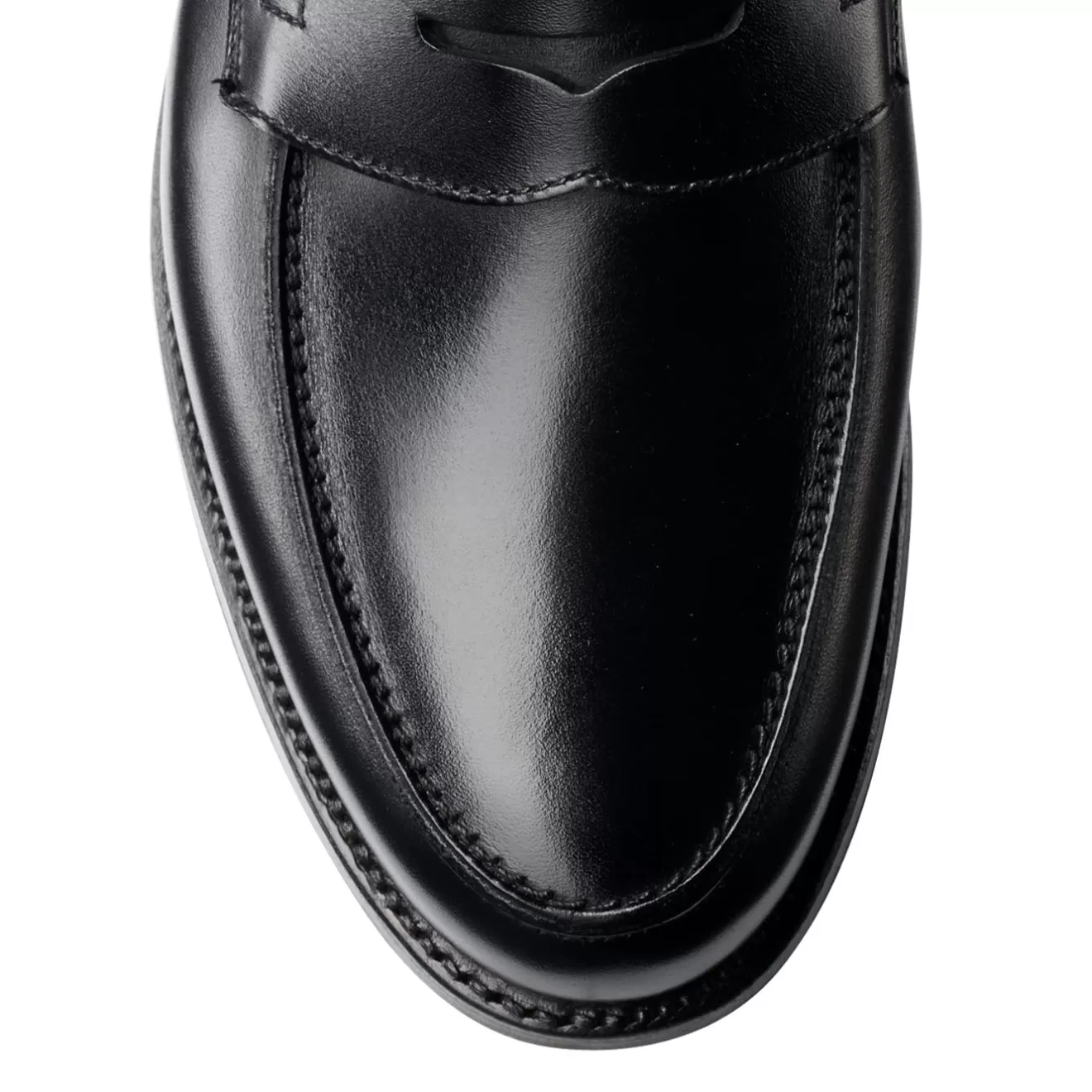 Grantham 2, a classic penny loafer with a butted seam apron. Made on last 376 from the finest black calf leather featuring single leather soles. From the Men’s Main Collection.