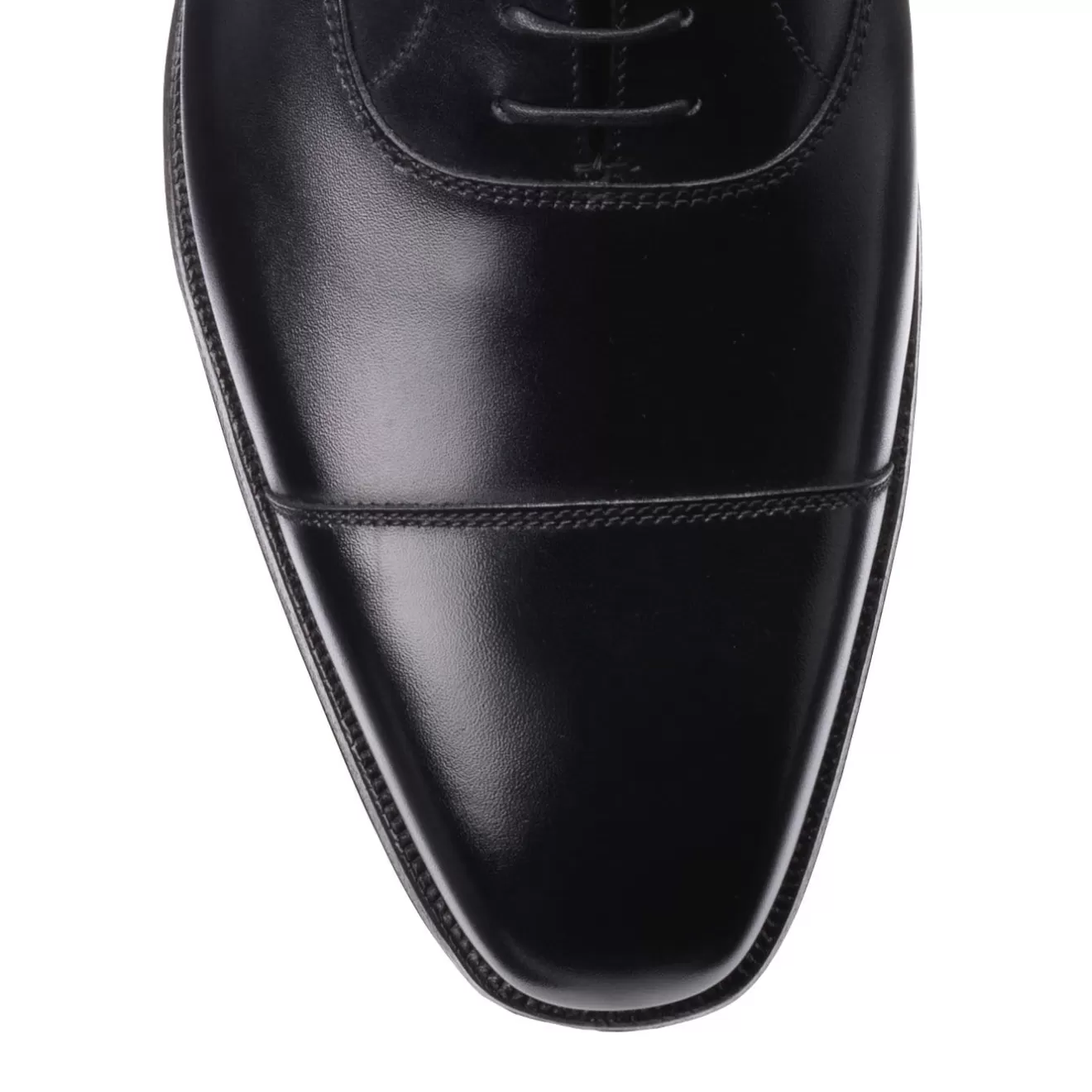 Hallam, one of our most popular straight toe cap oxfords, made from the finest black calf with single leather soles. From the Men’s Main Collection.