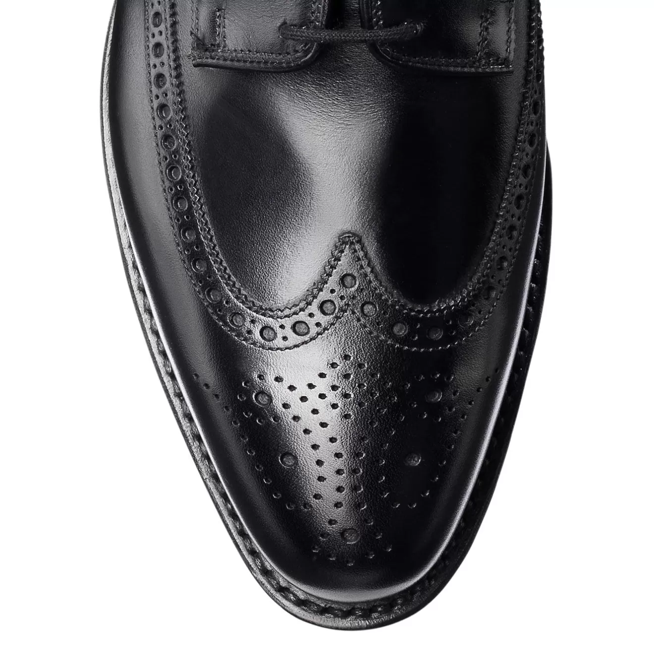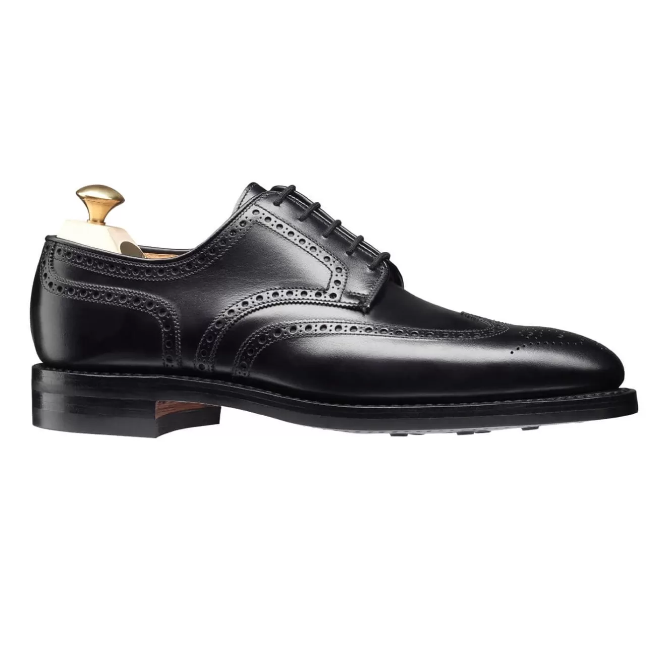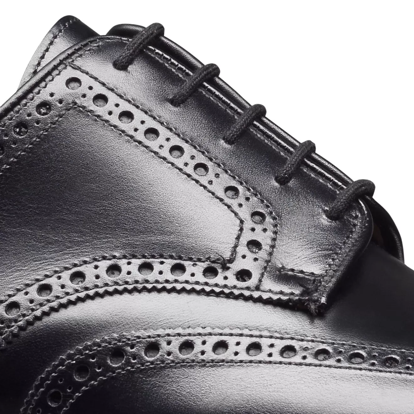 Swansea, a full brogue derby shoe with wing tip design and punching detail. Made from the finest black calf leather with Dainite rubber soles. From the Men’s Main Collection.