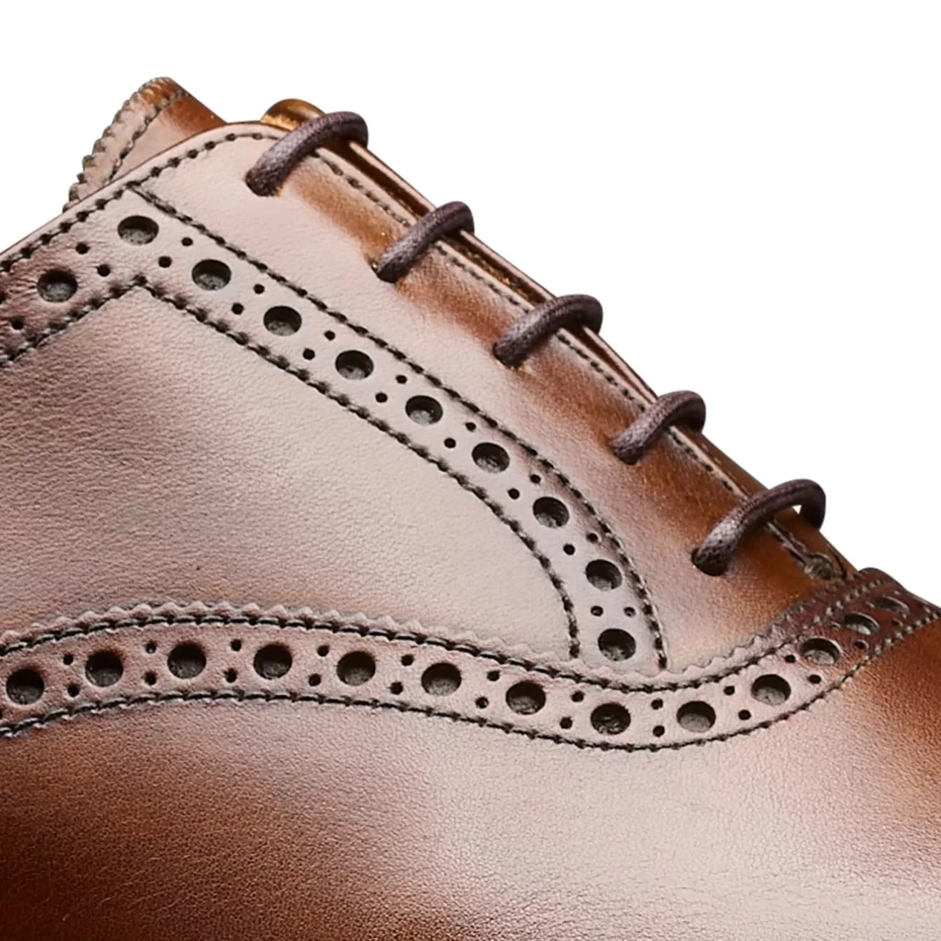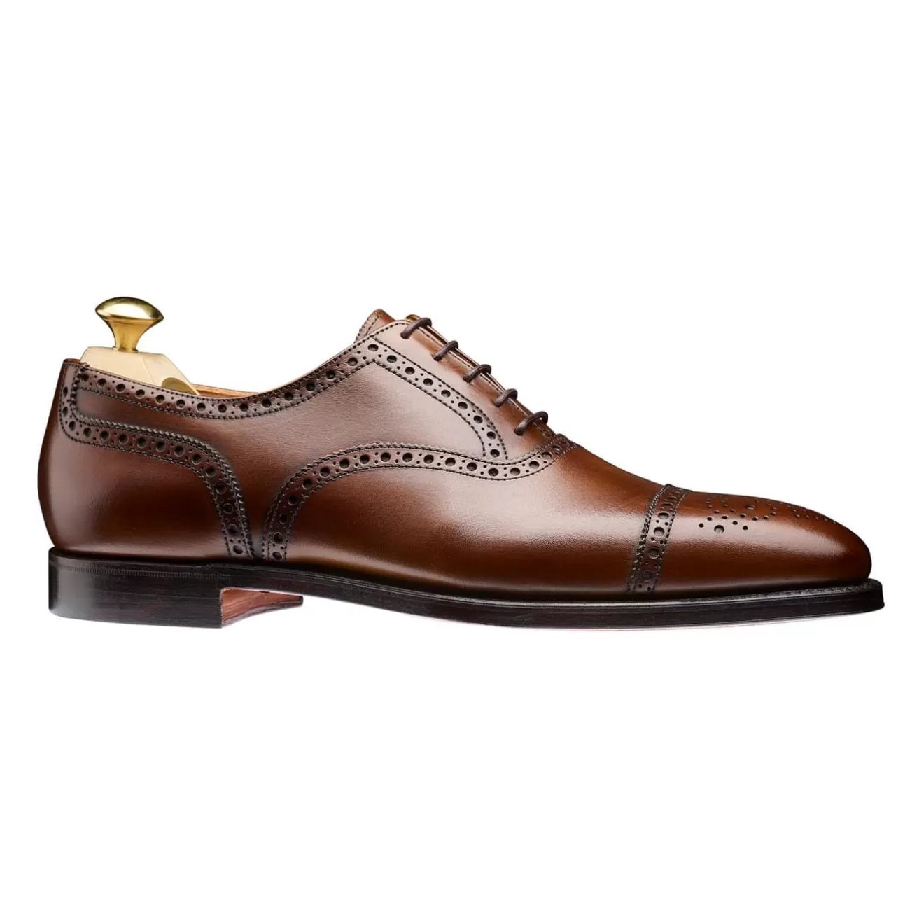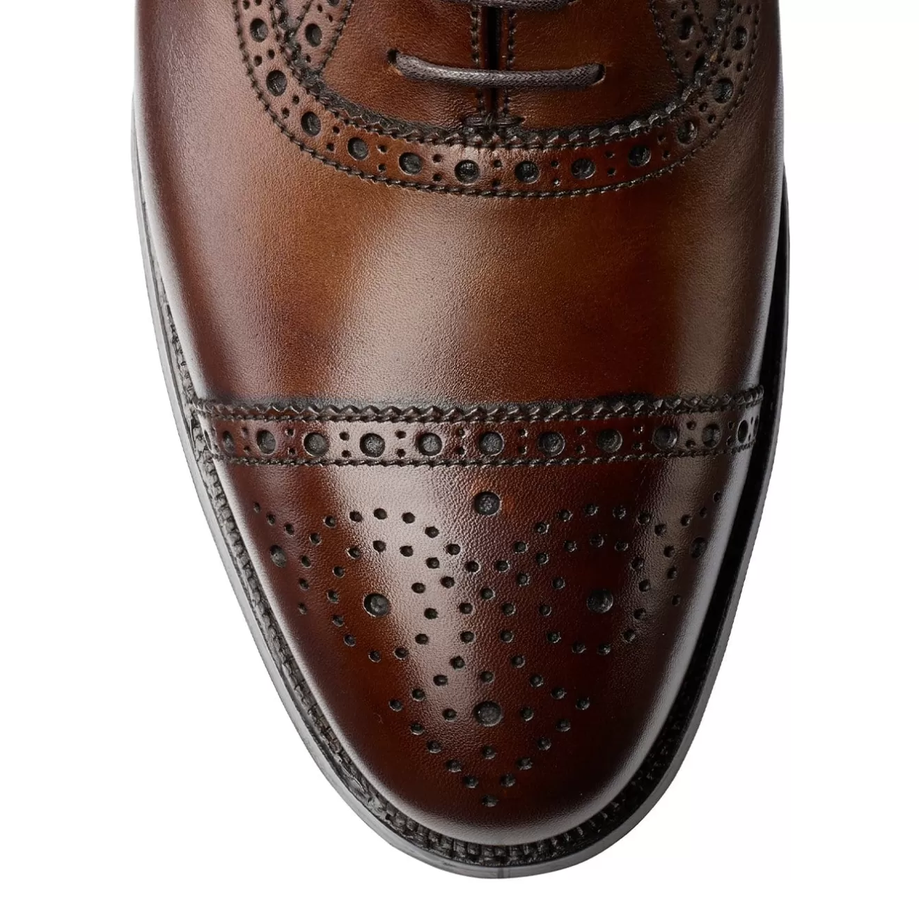 Westfield, a semi-brogue oxford shoe with a straight toe cap and punching detail. Made from the finest dark brown burnished calf leather with single leather soles. From the Men’s Main Collection.