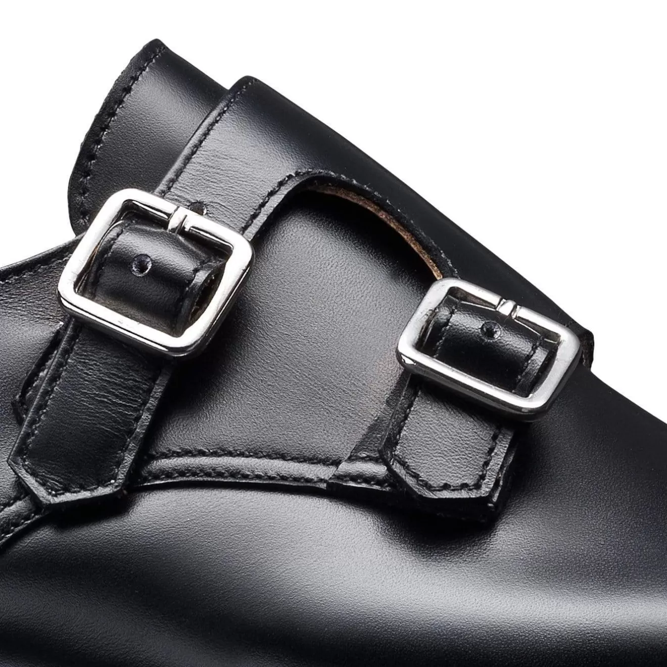 Ruby, a double monk style with silver buckles and a straight toe cap. Made from the finest black calf leather with single leather soles. From the Women’s Collection.