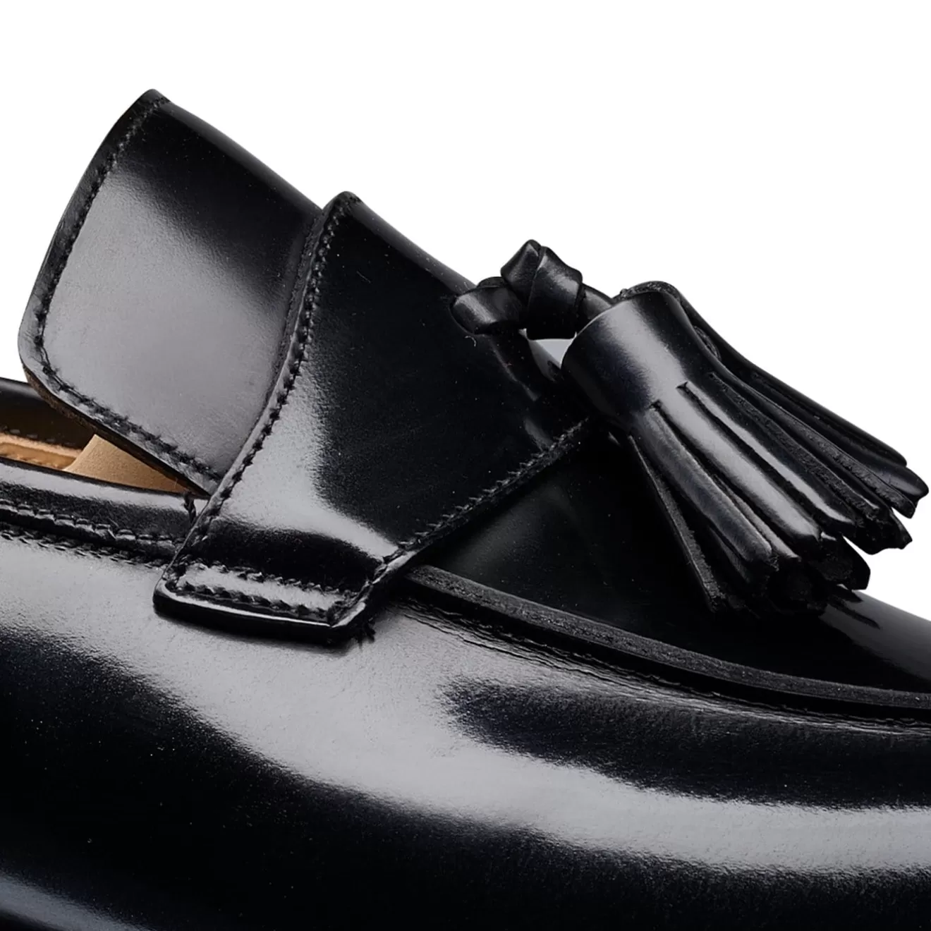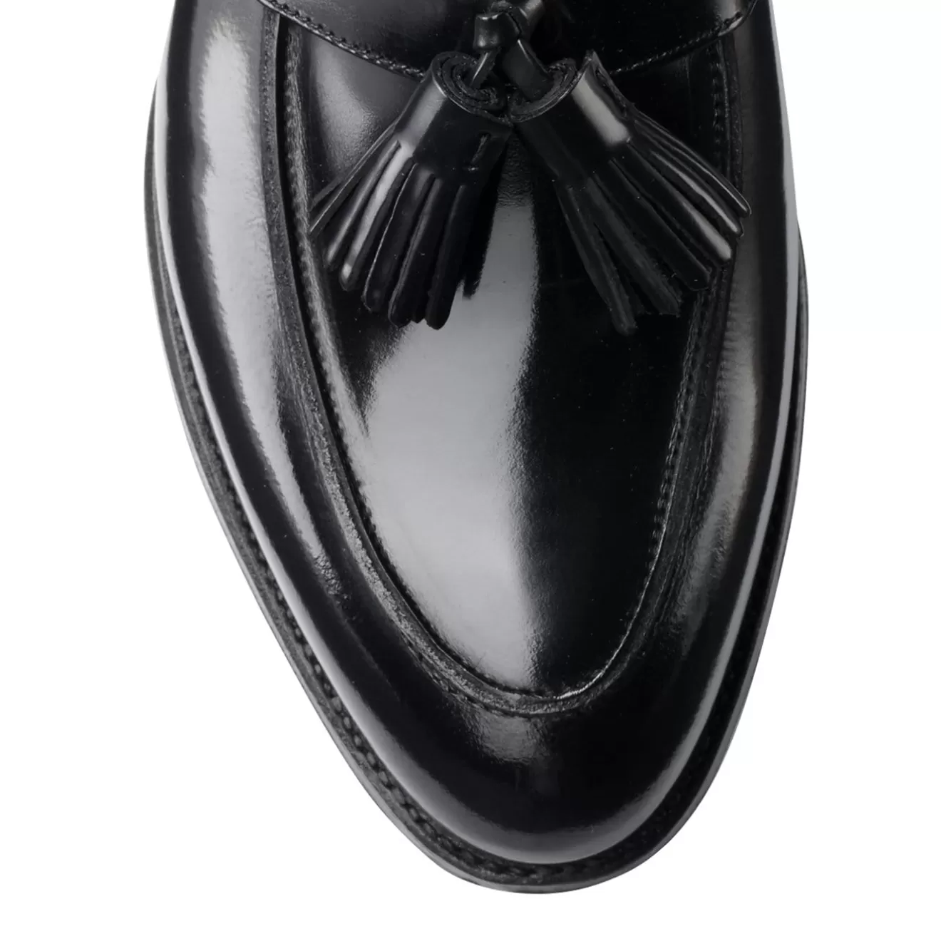 Sophie 2, a tassel style loafer with butted seam apron, made from the finest black boned calf with single leather soles. From the Women’s Collection.