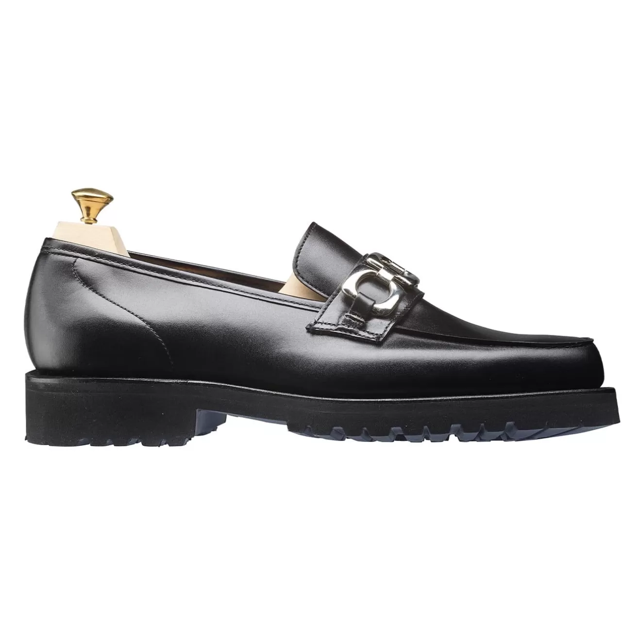 Lily, a penny style loafers with a raise seem apron, featuring a unique buckle strap with our chunky, but lightweight Vibram Vi-lite rubber sole. A first buckle strap loafer from Crockett & Jones, this example is unlined for added comfort and made from our finest black calf. From the Women’s Collection.
