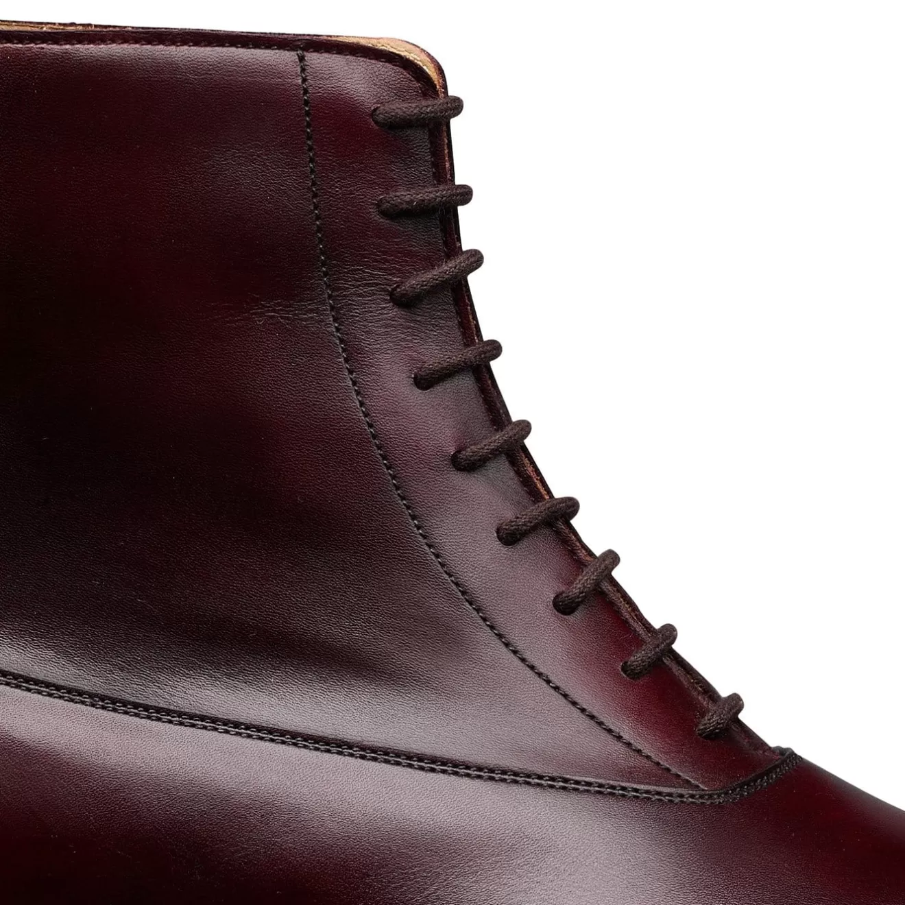 Olivia, a higher leg lace up boot with a straight toe cap. Made on last 617 from the finest burgundy calf leather and single leather soles. From the Women’s Collection.