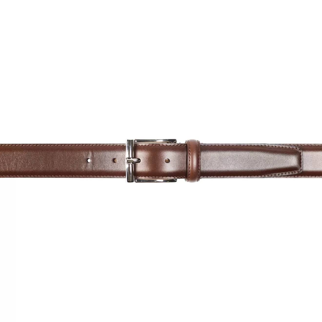 Our Dark Brown Burnished Calf Belt is fully leather lined with a hand finished, silver coloured buckle.