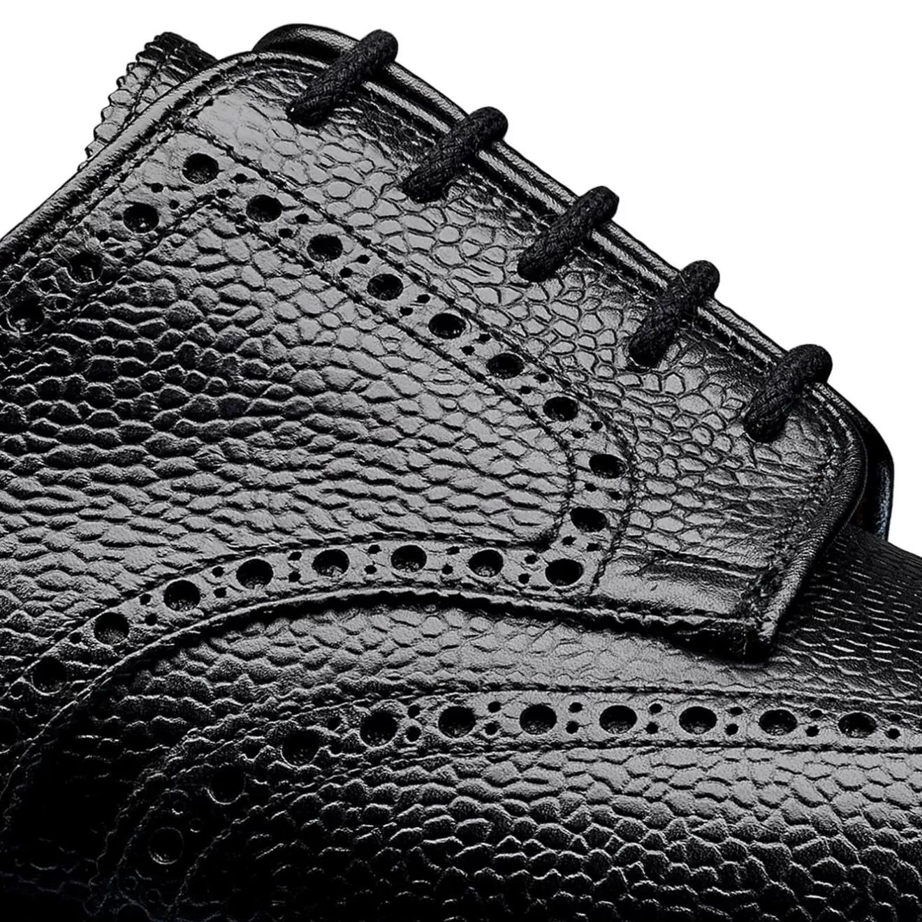 Pembroke, our classic full brogue country-style derby shoe with wing tip design and punching detail. Made from the finest black scotch grain and featuring an oversized lightweight rubber sole from Vibram, with an storm welt for added waterproof protection. From THE BLACK EDITIONS, an audacious collection of English footwear, influenced by Japanese style.