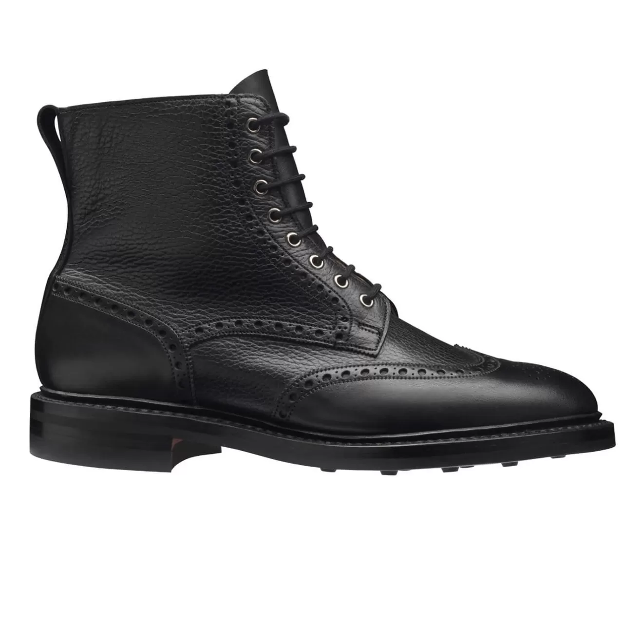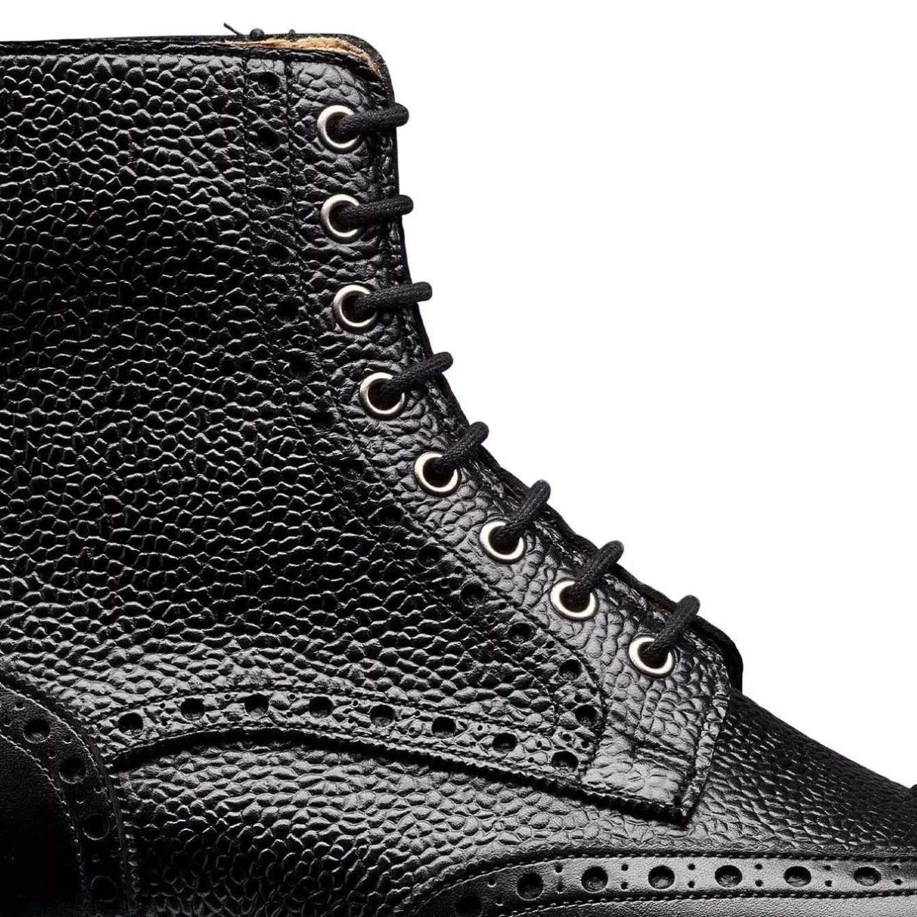 Grace 2, a gutsy full brogue derby boot made from the finest black scotch grain and black calf combination, featuring Dainite rubber soles with a storm welt for added water resistance. From the Women’s Collection.
