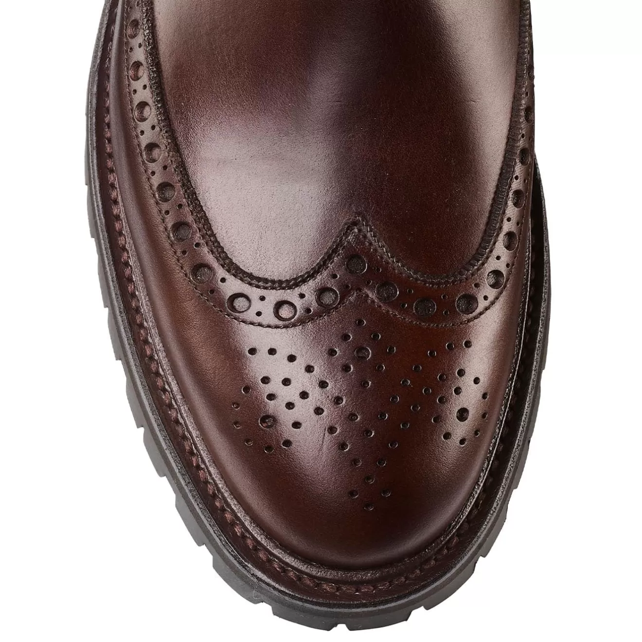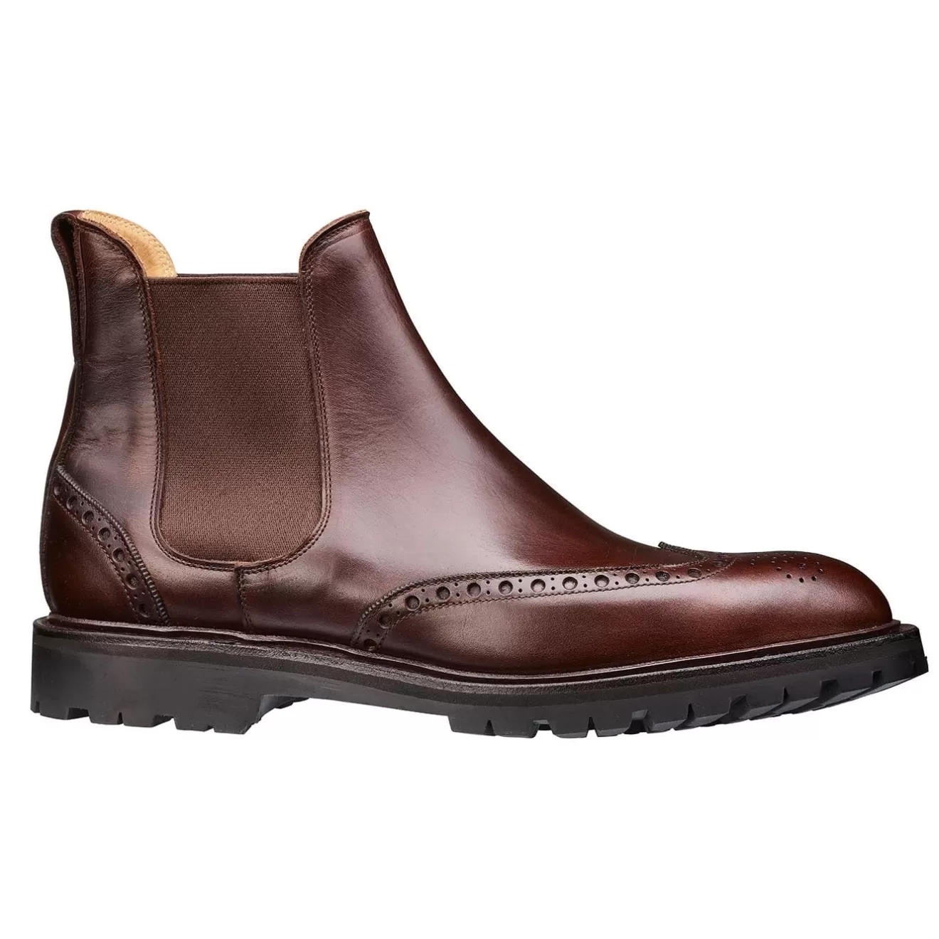 Harris, a full brogue chelsea boot take on our iconic Islay boot. Featuring the same two and one punching, medallion and leather back strip. Made from our tough and comfortable coffee hurricane hide with a chunky vibram rubber sole. From the Men’s Main Collection.