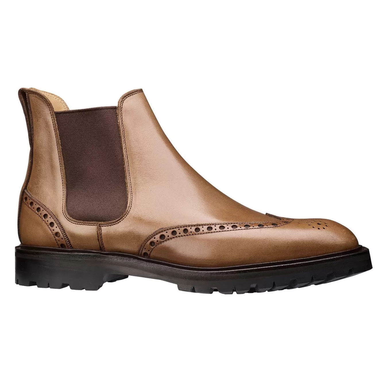 Harris, a full brogue chelsea boot take on our iconic Islay boot. Featuring the same two and one punching, medallion and leather back strip. Made from our tough and comfortable sand hurricane hide with a chunky vibram rubber sole. From the Men’s Main Collection.