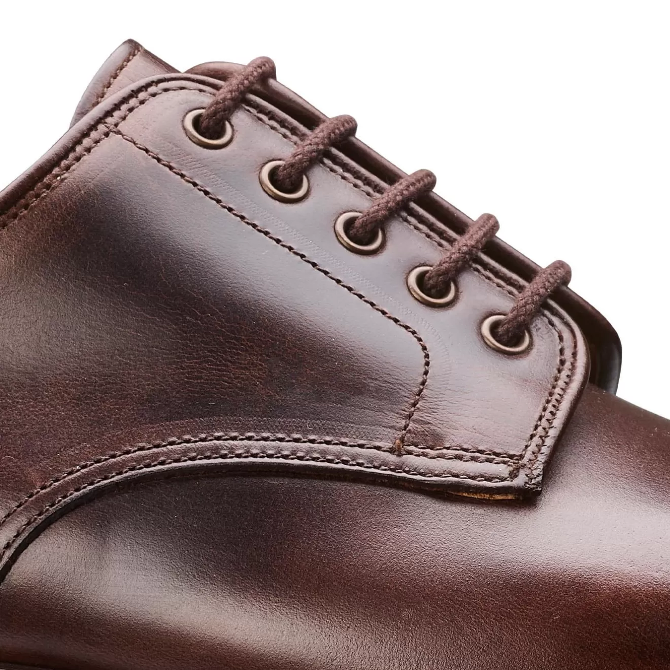 Cornell, a countrified plain toe, 5-eyelet Derby, made on the 378 last, offering a heavy round toe with increased toe depth. Made from our tough and comfortable coffee hurricane hide with dainite rubber soles. From the Men’s Main Collection.