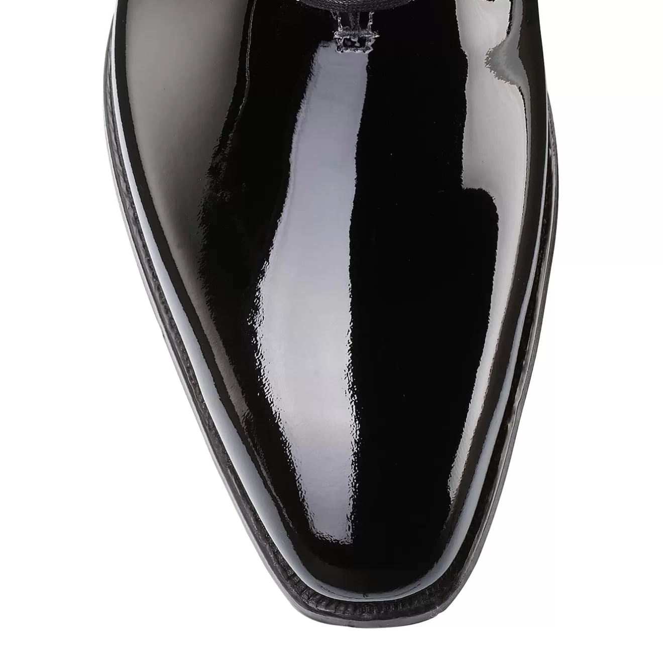 Alex, a plain fronted whole-cut oxford made from the finest black patent leather and featuring single leather soles. From the Men’s Main collection.