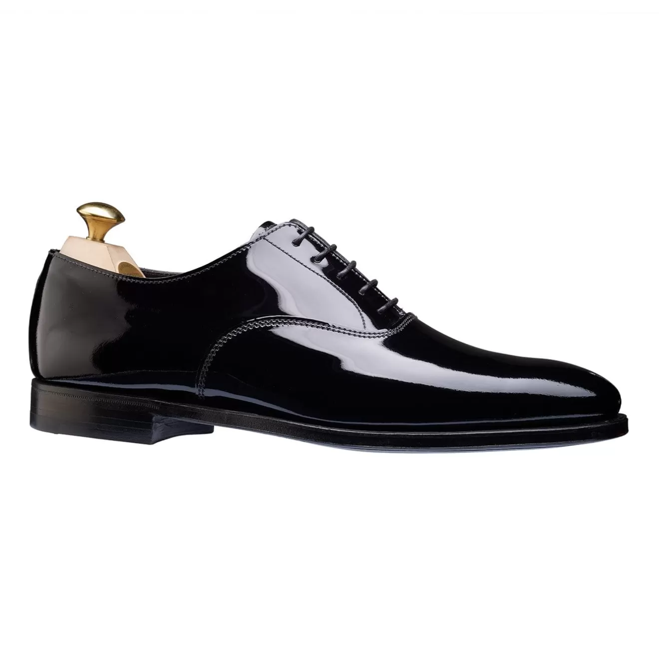 Overton, a plain fronted dress shoe, offering elegance in abundance. Made from the finest black patent leather with a lighter weight welt and lightweight leather sole. This style is perfect for formal evening wear. From the Men’s Main Collection.
