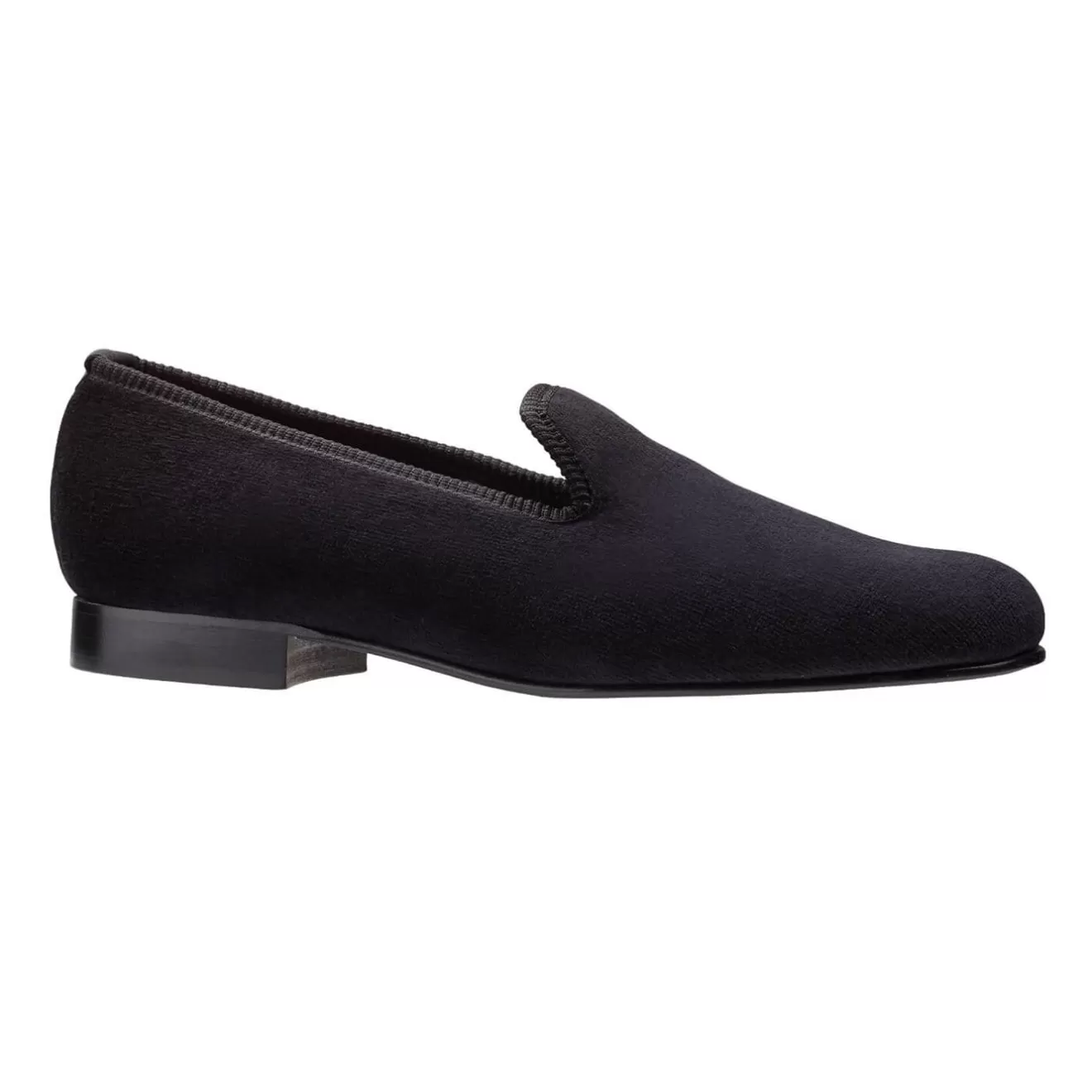 Albert, a plain house slipper made from soft black velvet and satin quilted linings with a hard leather sole. From the Men’s Main Collection.