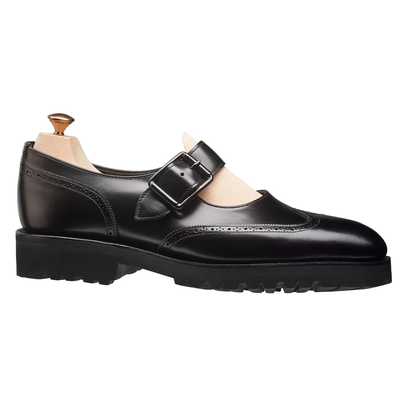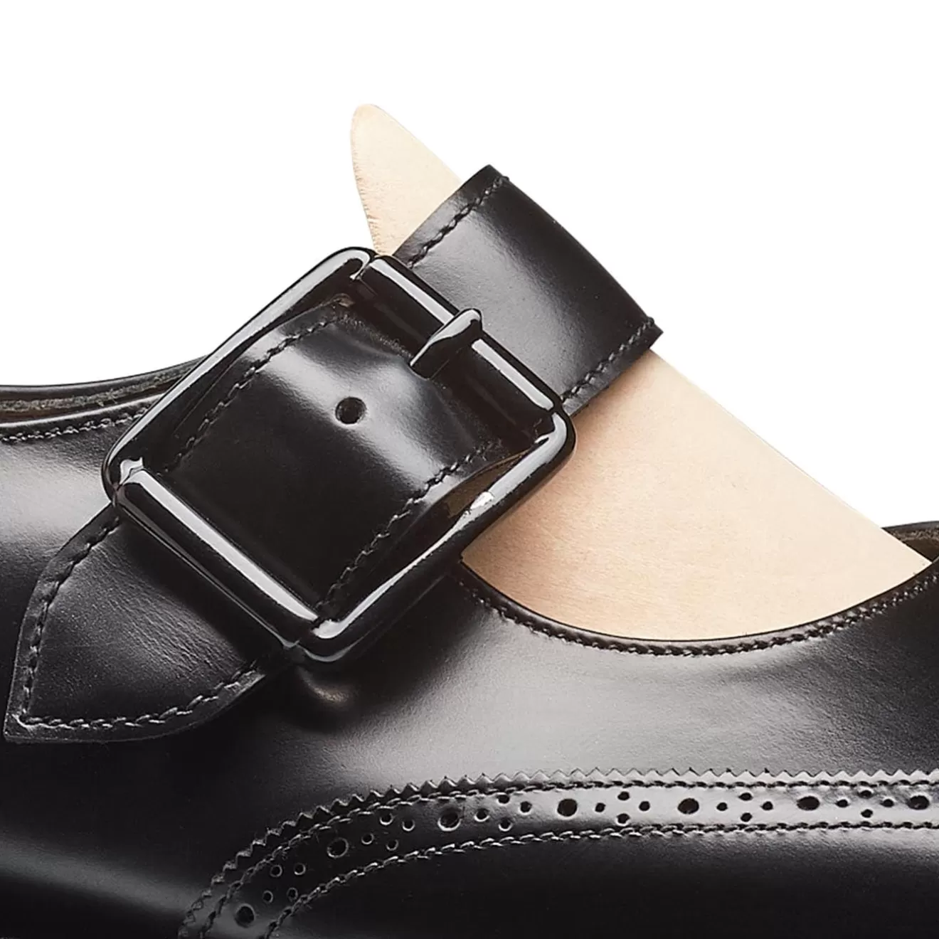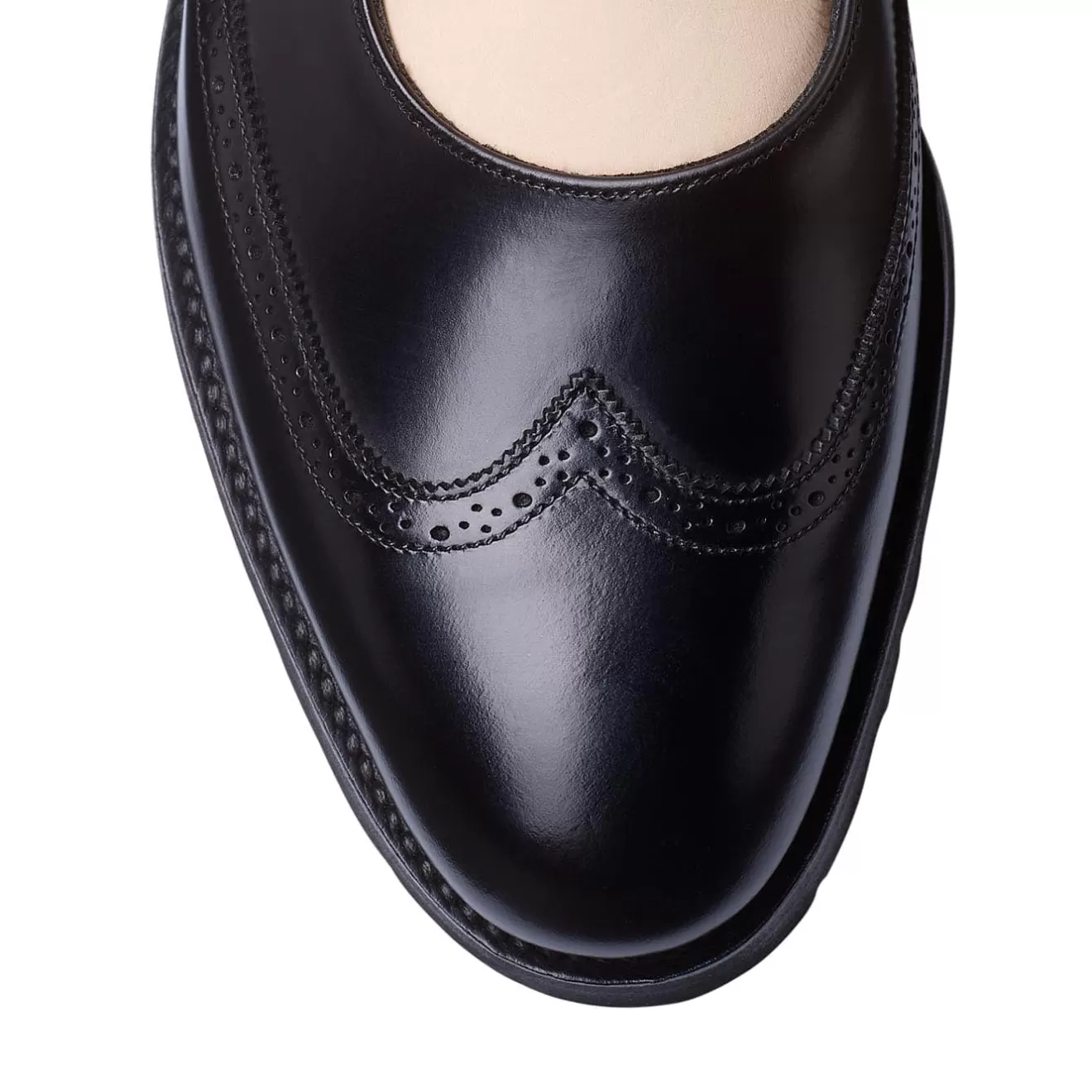 Nina, a single buckle Mary Jane style with a delicately brogued wing tip design. Made from the finest black calf leather with a chunky, lightweight rubber sole from Vibram. From the Women’s Collection.