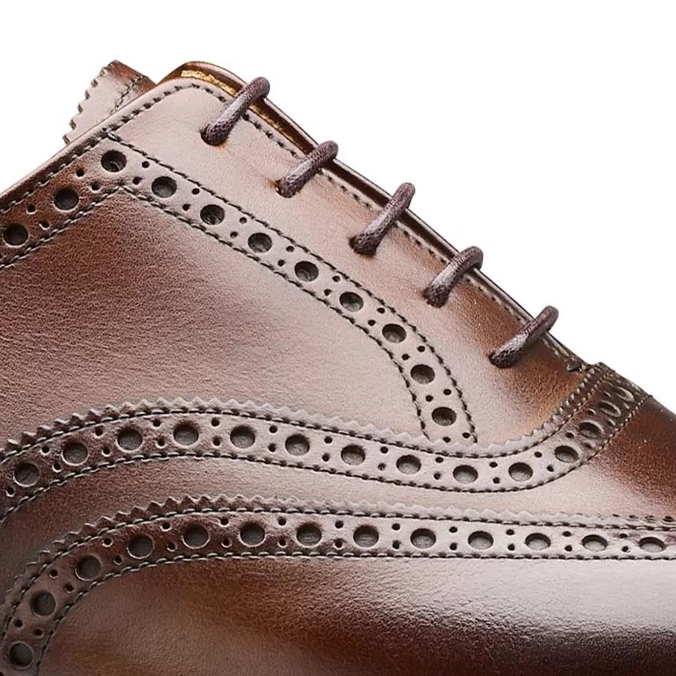 Westgate 2, a classic full brogue oxford with wing tip design and punched medallion on the toe. Made from the finest dark brown burnished calf leather with our City rubber sole. From the Men’s Main Collection.