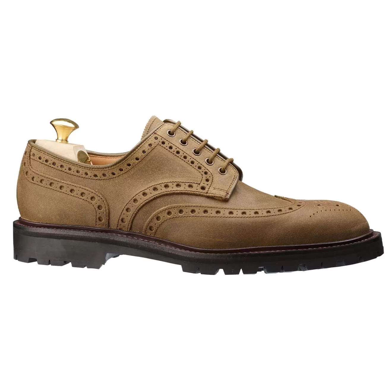 Cardigan 5, a classic full brogue, country-style derby with wing tip design and punching detail. Robust storm-welts, chunky Vibram rubber sole, top eyelets and bold broguing speak of a Derby style that means business! A Rough-out suede version is the perfect winter-ready match, set to take on the elements.