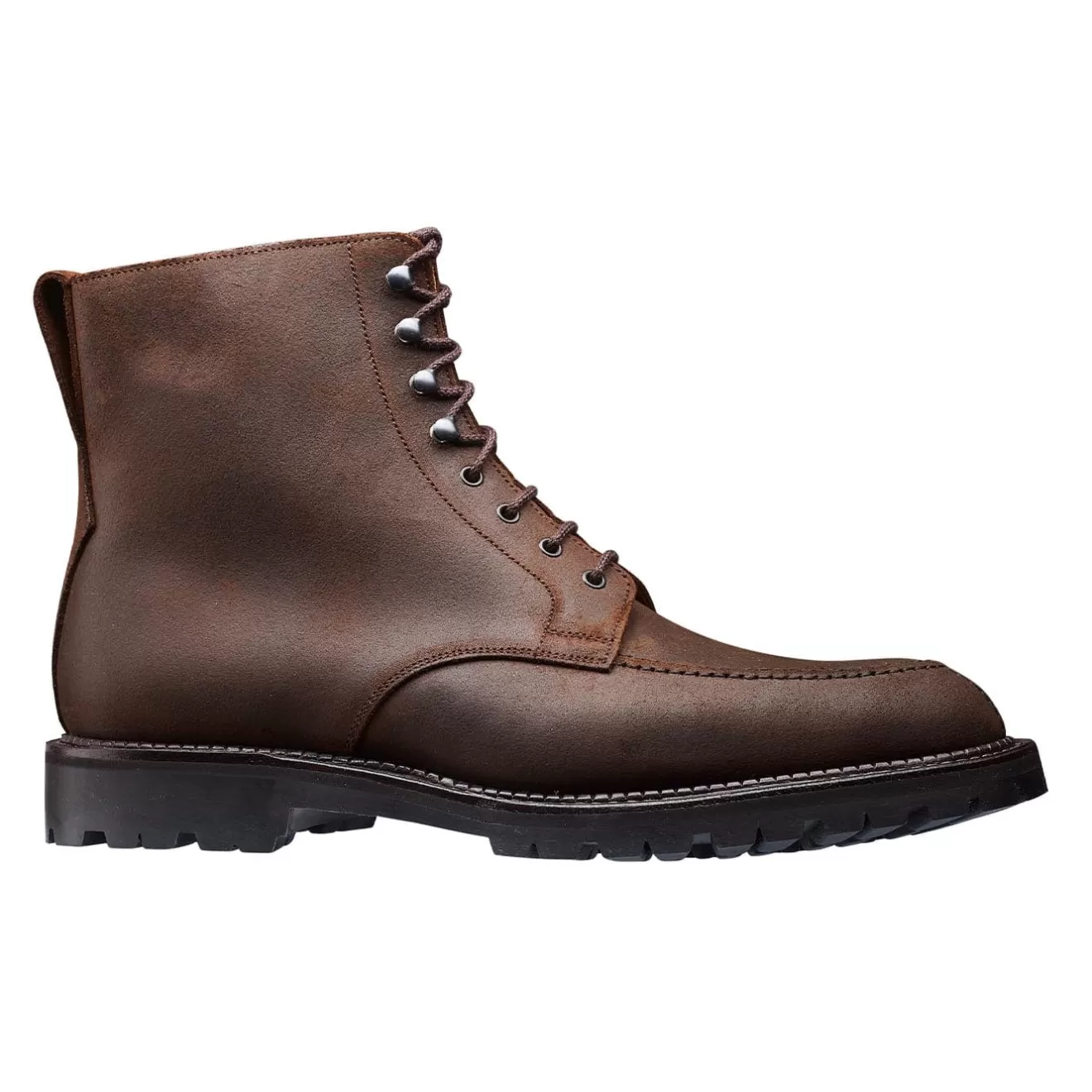 Indiana, an apron fronted derby boot made on the excellent fitting 378 boot last in dark brown rough-out suede. Rough-out suede is a tough, uncompromised waxed suede with water resistant properties. When combined with our Vibram cleated rubber sole, this tried and tested leather made light work of the Icelandic terrain. From the Men’s Main Collection.
