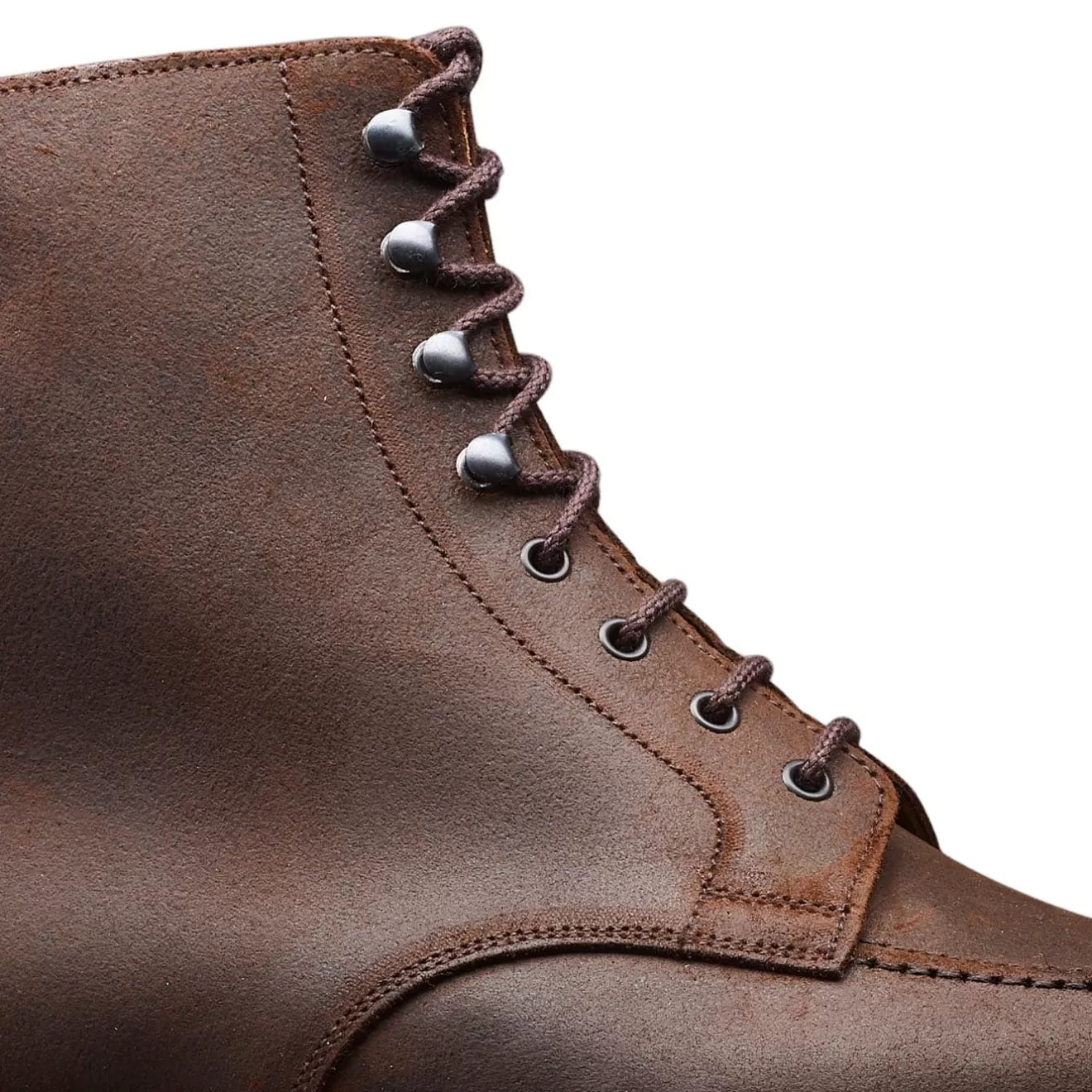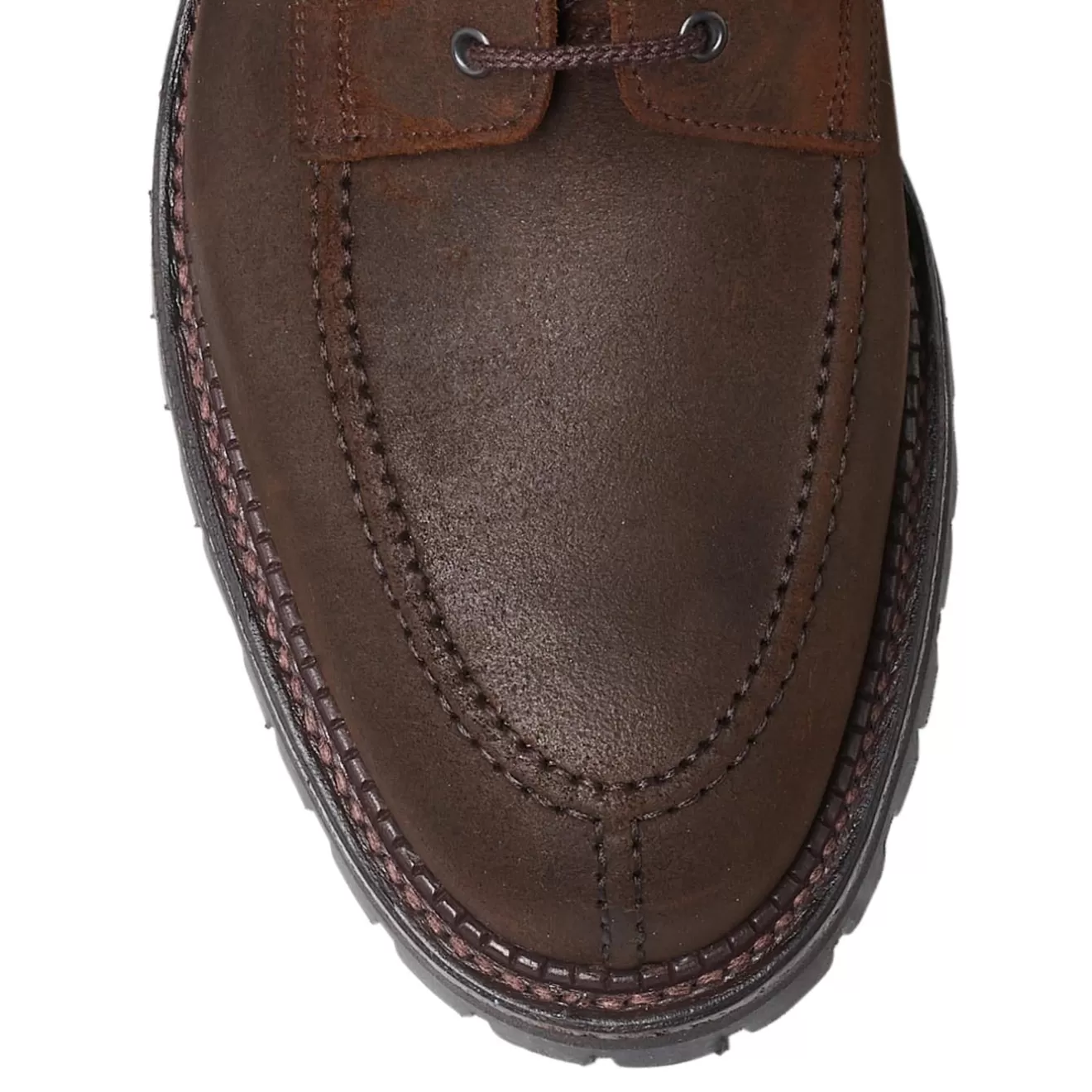 Rough-out suede is a material that ‘roughs-up’ during wear. Over time, it takes on a rugged, worn aesthetic which makes it our most casual material in the collection. If left uncared for, you will find it lightens and continues to become rougher in look and feel. However, rough-out suede very much benefits from an annual covering in dubbin to uphold its water resistance. An application of dubbin will also darken down the leather, and reduce its rough appearance bringing back some ‘newness’.