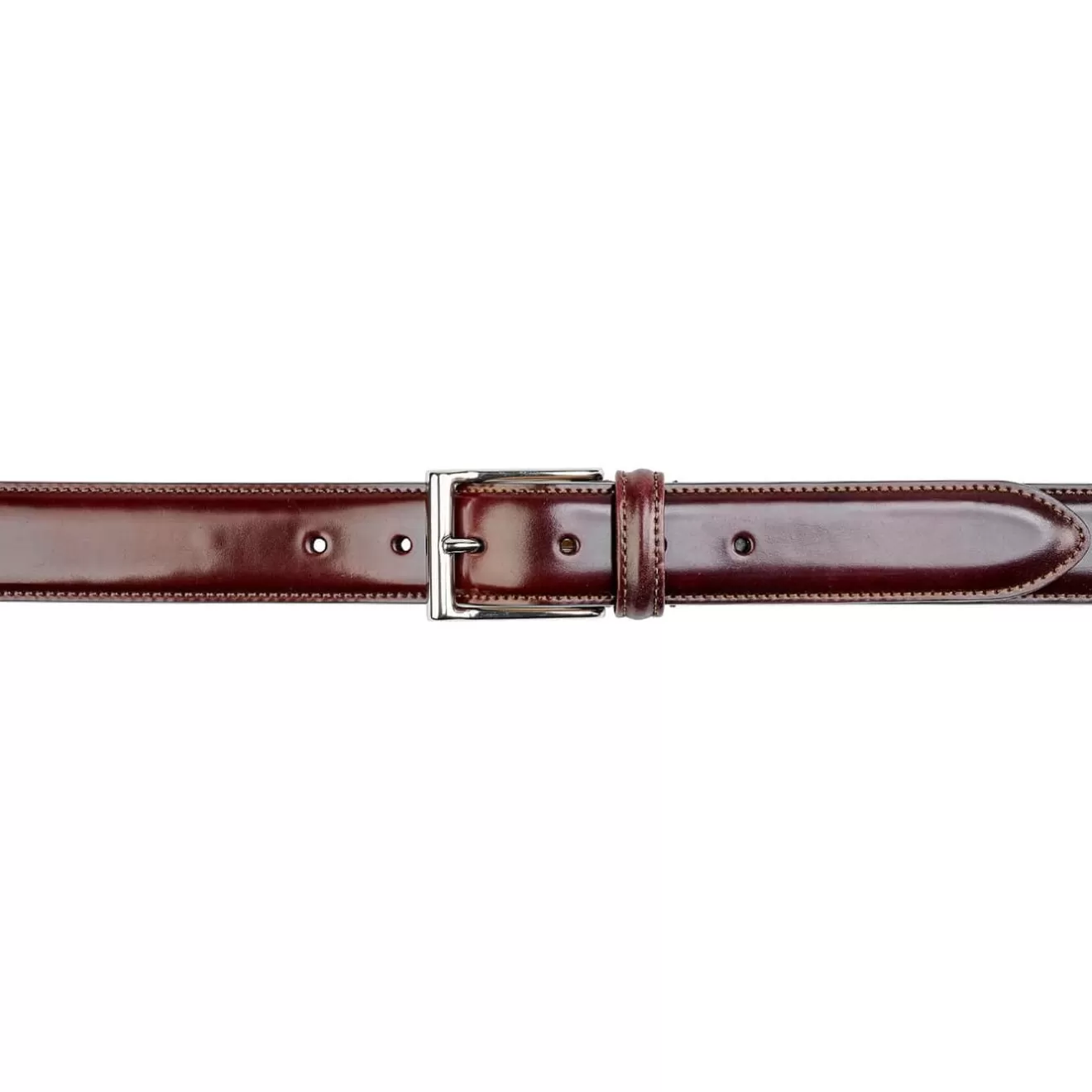 Our Burgundy Cordovan Belt is fully leather lined with a hand finished, silver coloured buckle.