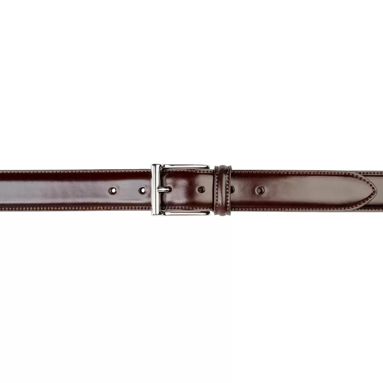 Our Dark Brown Cordovan Belt is fully leather lined with a hand finished, silver coloured buckle.