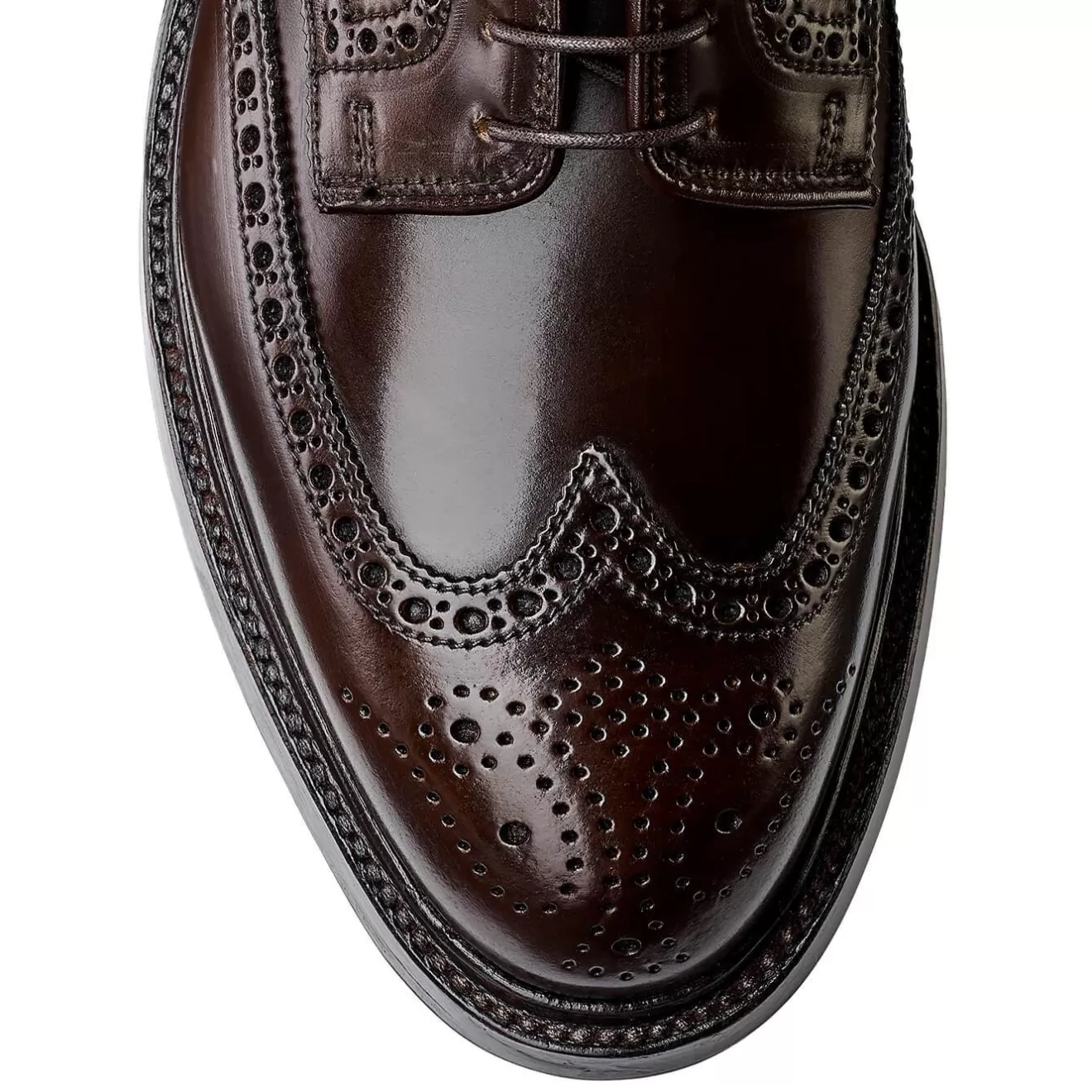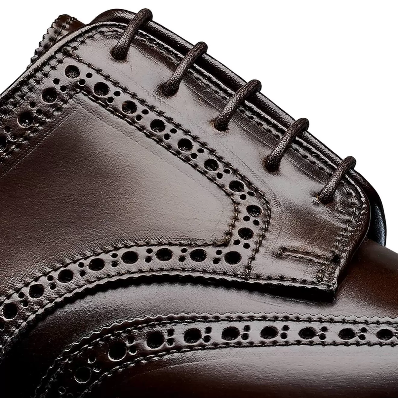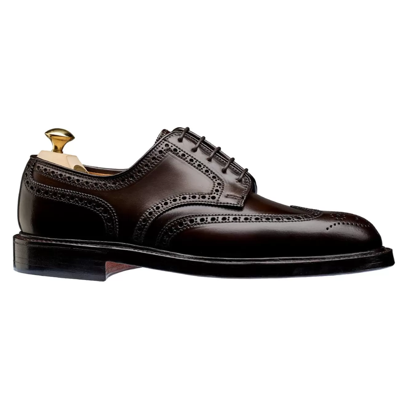 Pembroke, our classic full brogue country-style derby shoe with wing tip design and punching detail. Made from Horween’s dark brown shell cordovan with double leather soles and a storm welt for added waterproof protection. From the Men’s Shell Cordovan Collection.