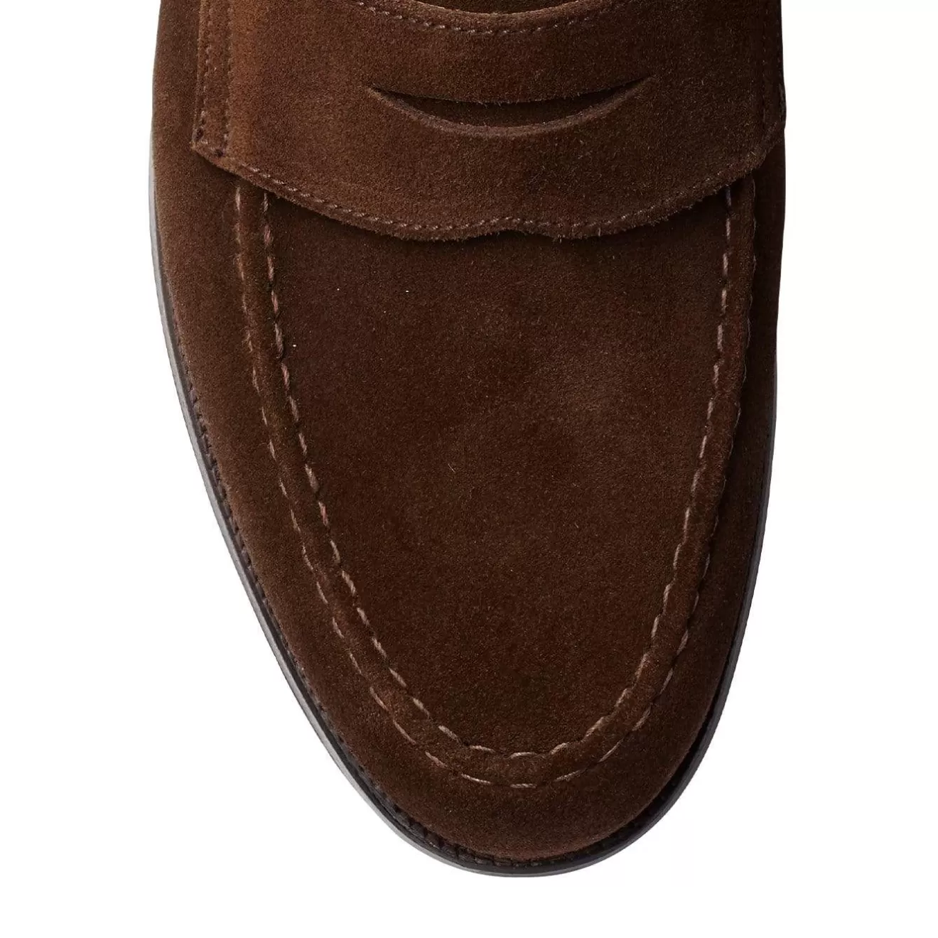 Boston, a classic penny loafer made from the finest dark brown suede leather with a single leather sole. From the Men’s Main Collection.
