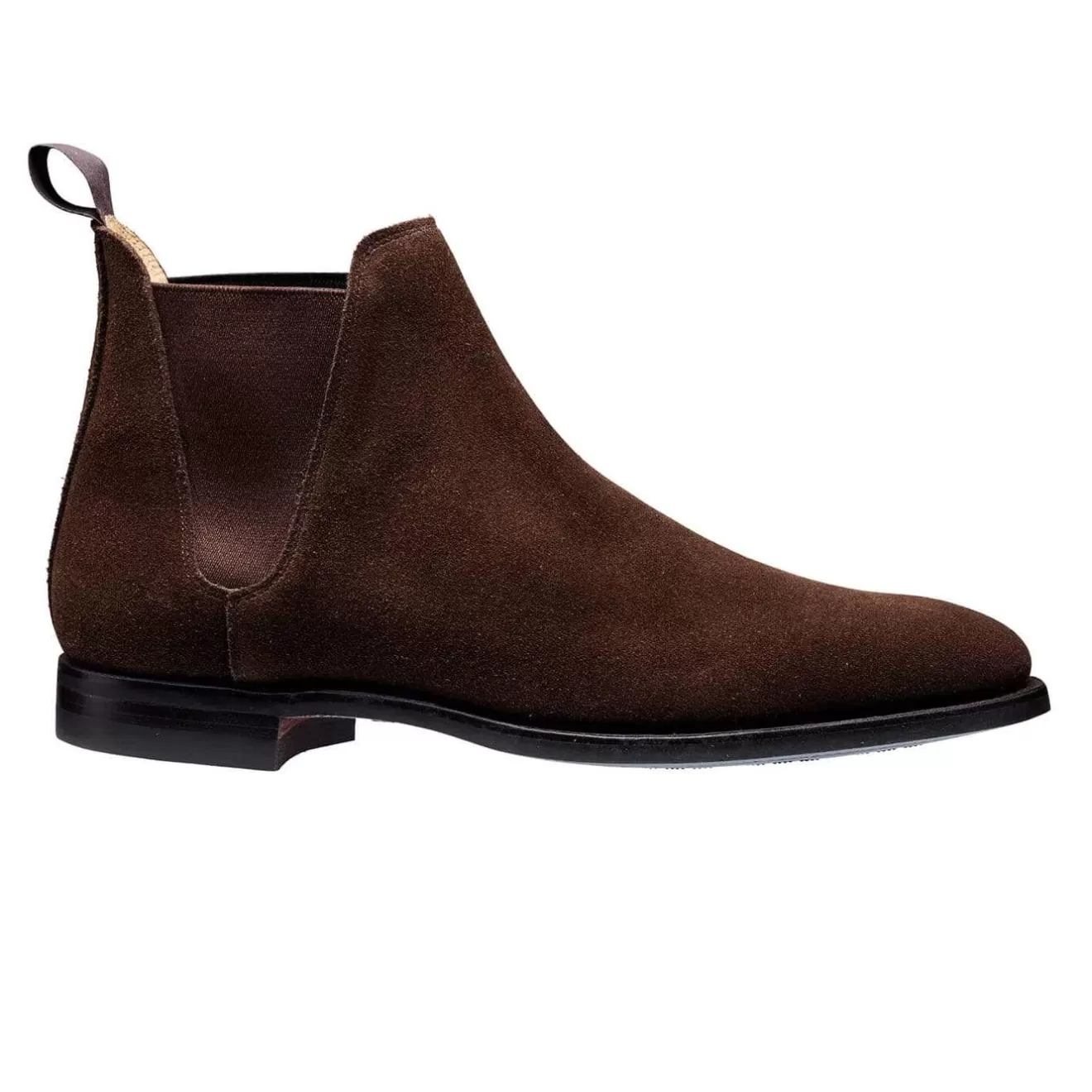 Chelsea 8, a Chelsea boot with ‘V’ shaped side elastics, made from the finest dark brown suede leather with ‘City’ rubber soles in G fitting. From the Men’s Main Collection.