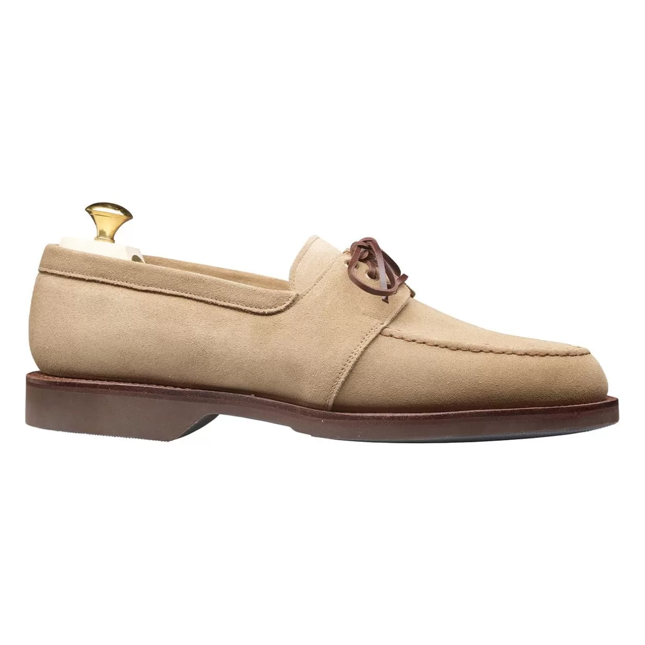 Falmouth is our interpretation of a summer boat shoe available in Suede and Tax Wax Calf. This style is technically a hybrid ‘Loafer-cum-Derby’. Featuring our new rubber wedge sole.
