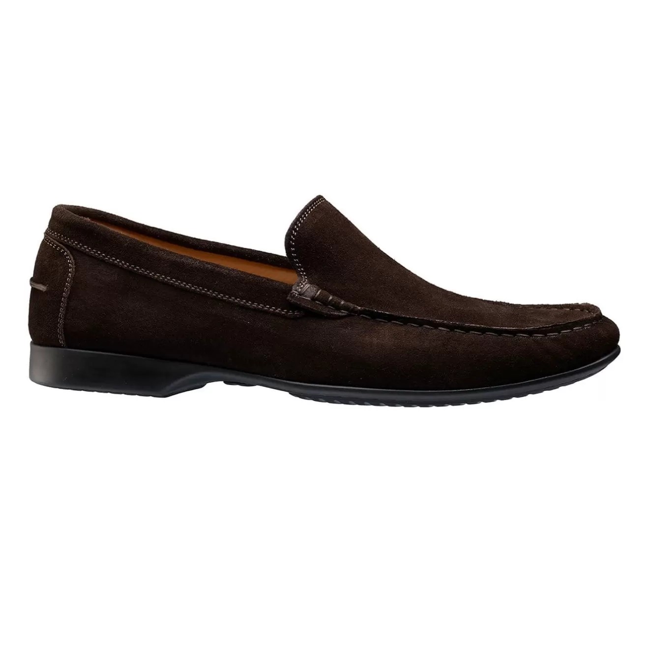 Roma, a plain loafer style driving shoe made from unlined dark brown suede with full rubber soles. From the Men’s Main Collection.