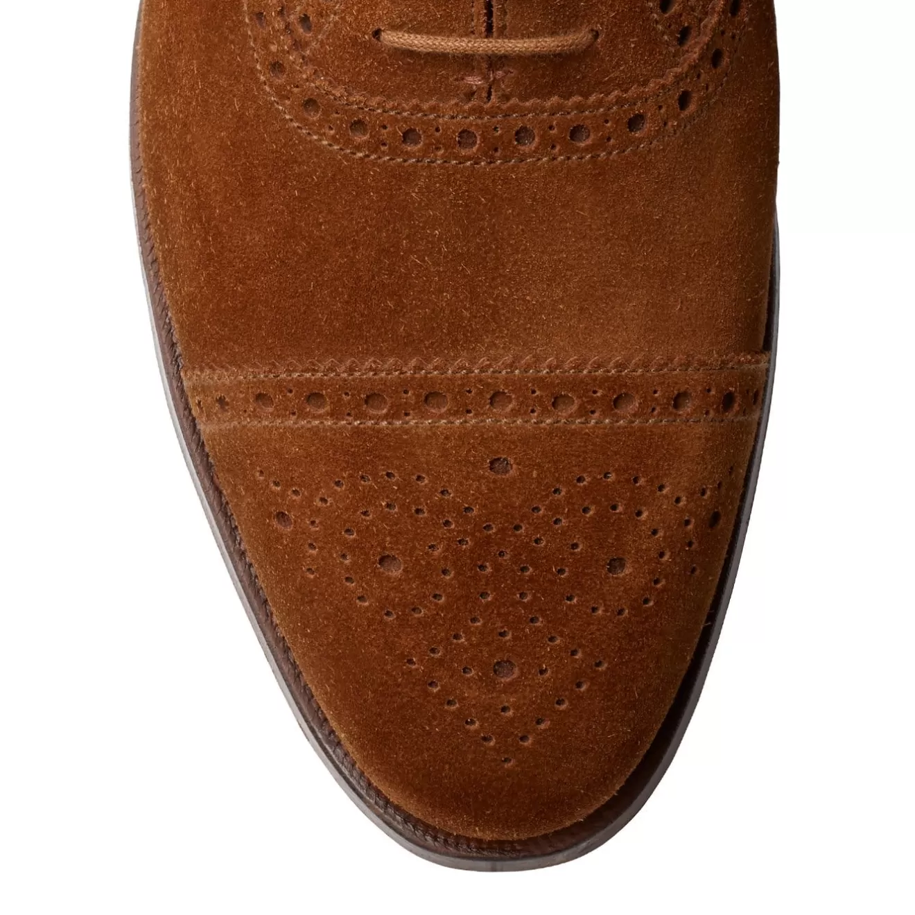 Westfield, a semi-brogue oxford shoe with a straight toe cap and punching detail. Made from the finest tobacco calf suede leather with single leather soles. From the Men’s Main Collection.