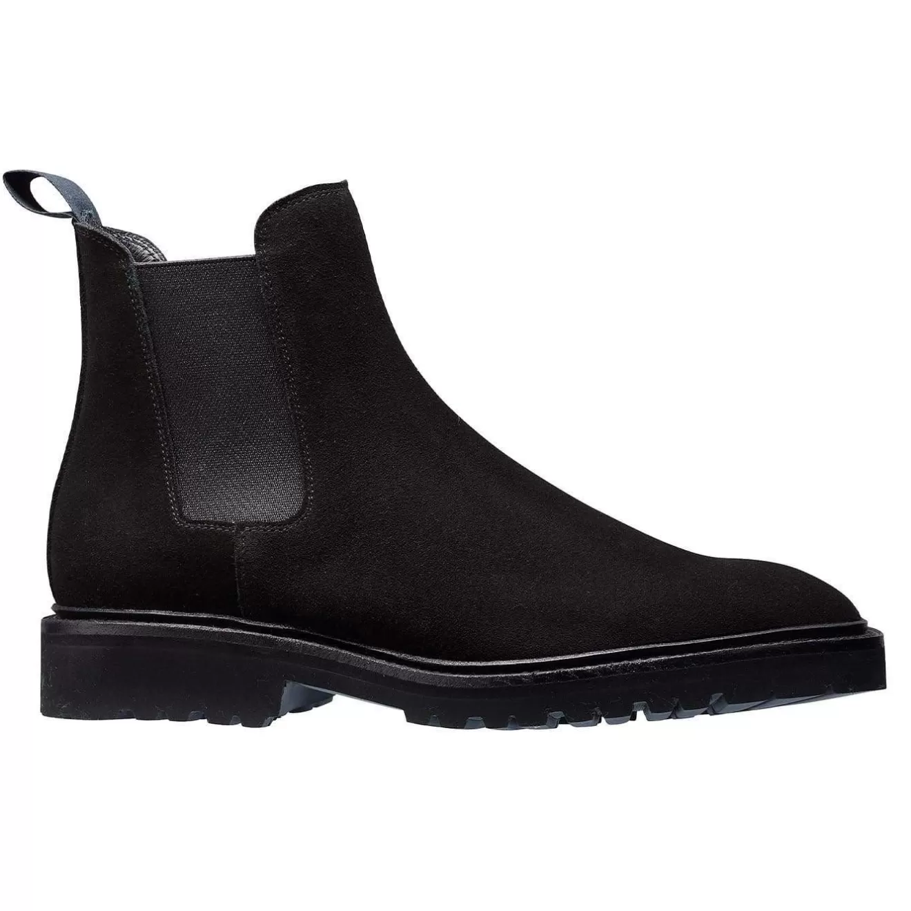 Poppy, a classic ankle height chelsea boot made from the finest black suede, featuring an oversized lightweight rubber sole from Vibram, and a storm welt for added protection form the elements. From the Women’s Collection.
