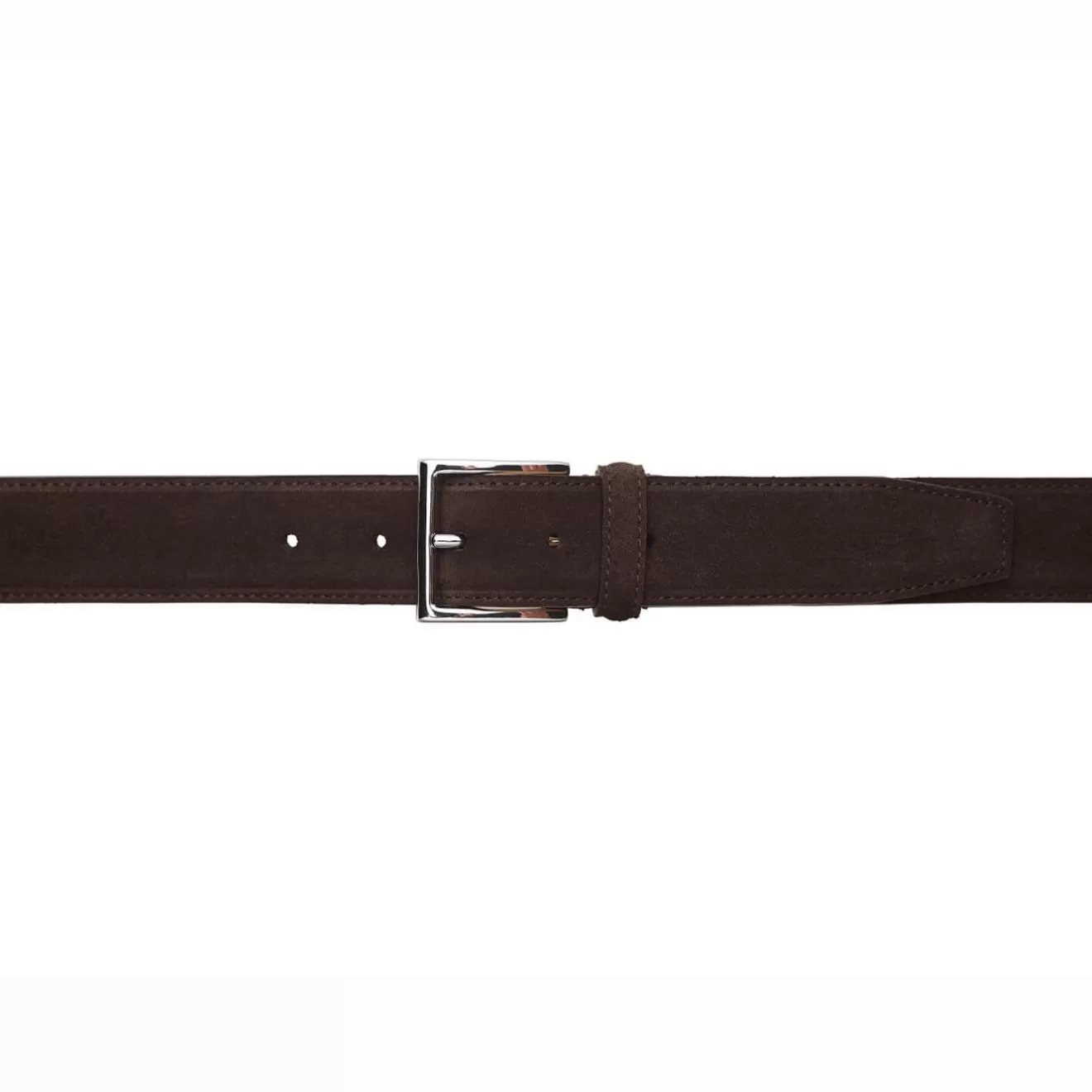 Our Dark Brown Suede Belt is fully leather lined with a hand finished, silver coloured buckle.