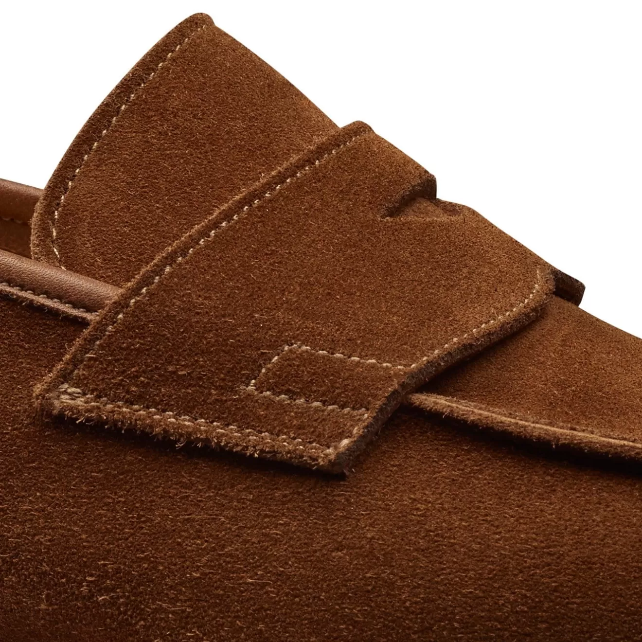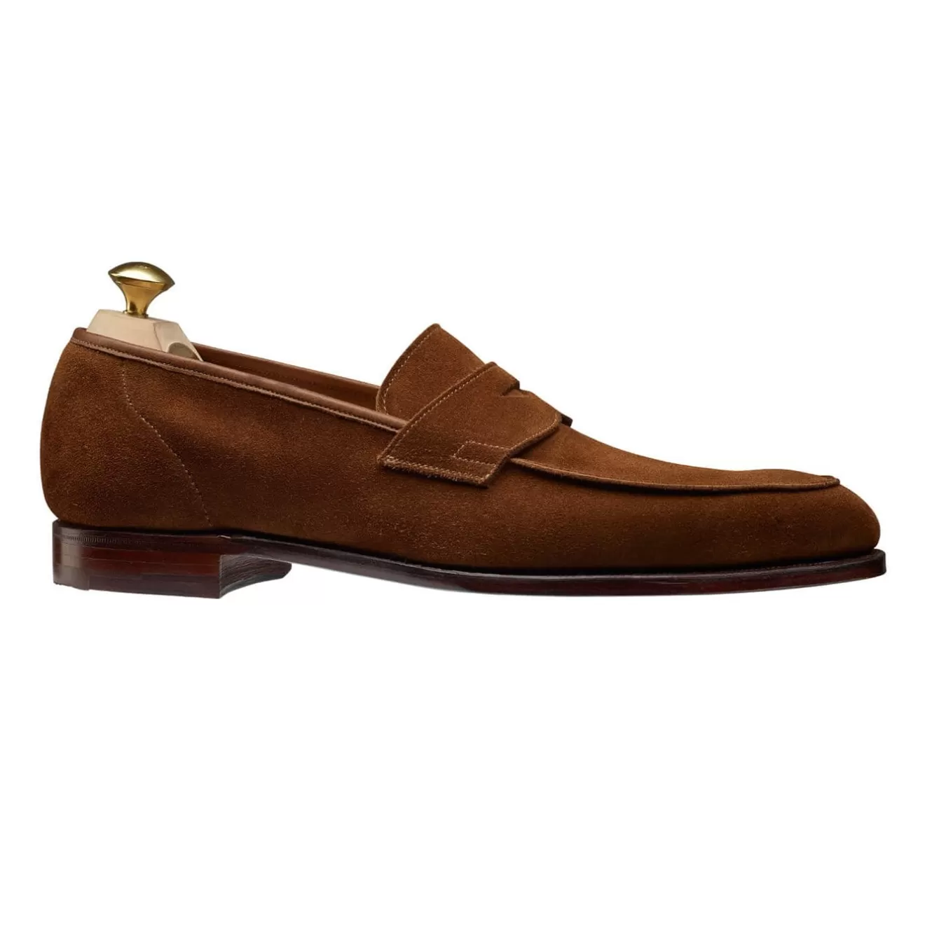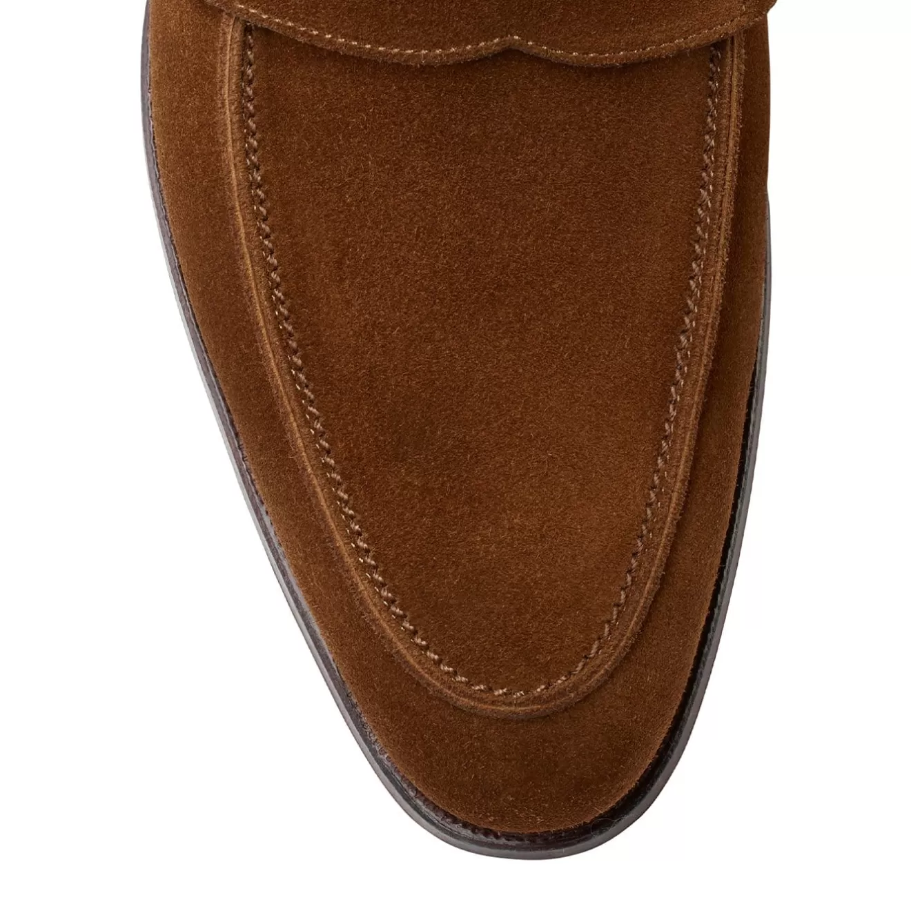 Cadogan, an unlined penny loafer made from the finest tobacco calf suede with bark tanned single leather soles. From the Hand Grade collection.