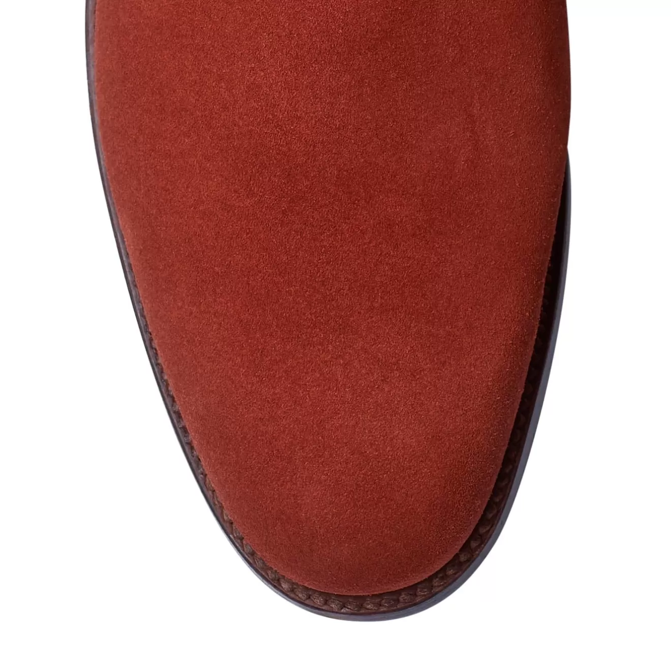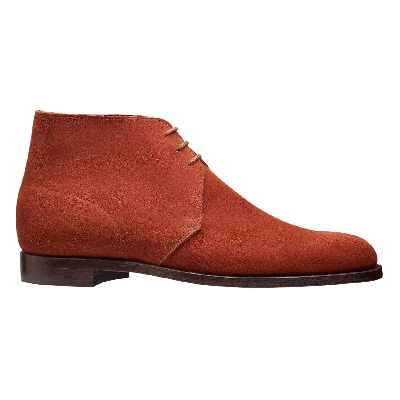 Chukka, an unlined ankle height boot which has become a signature shoe for our European customers. Made from the finest terracotta suede with superflex leather soles. Made in Northampton, loved in Paris, this special edition Chukka commemorates 25 years of Crockett & Jones Parisian retail.