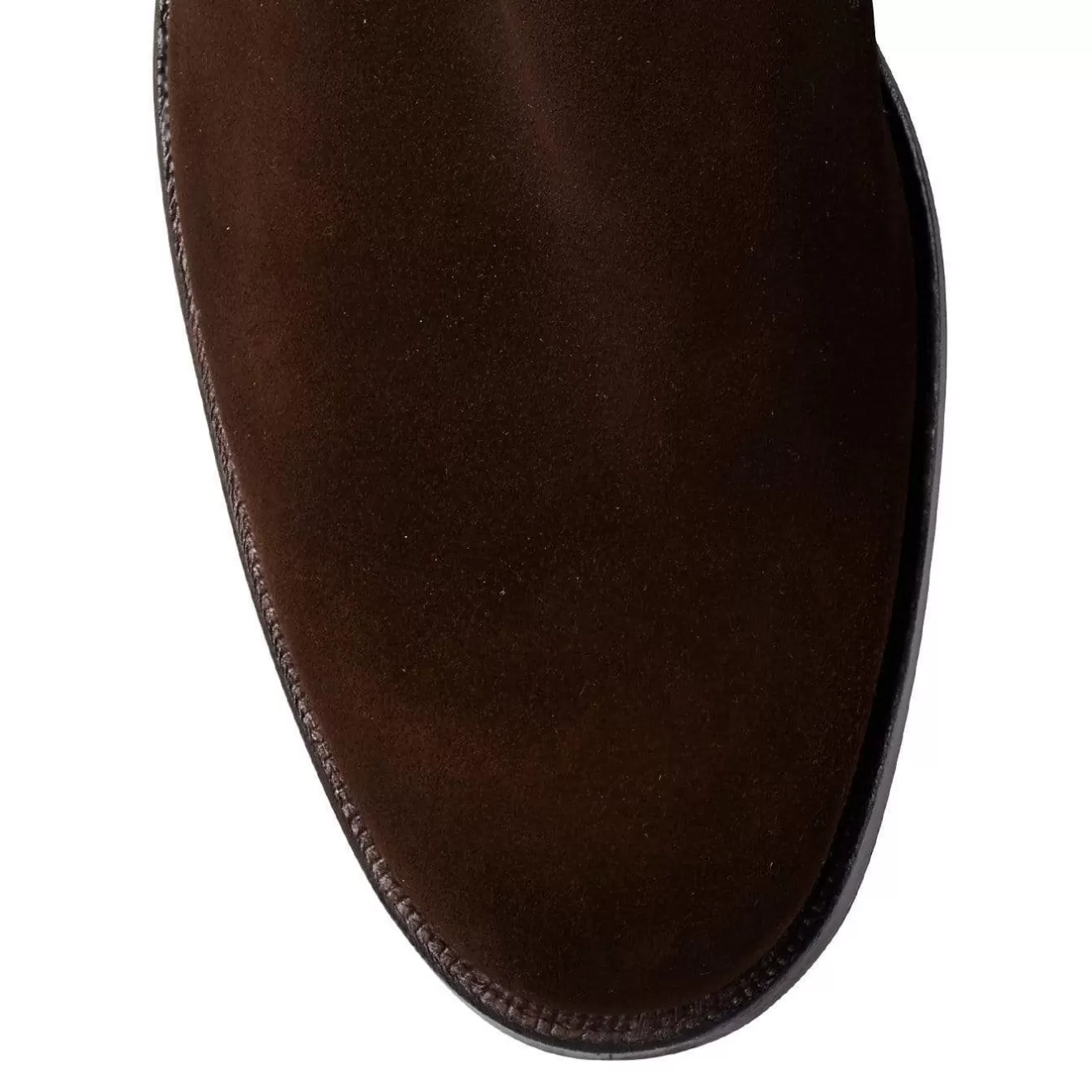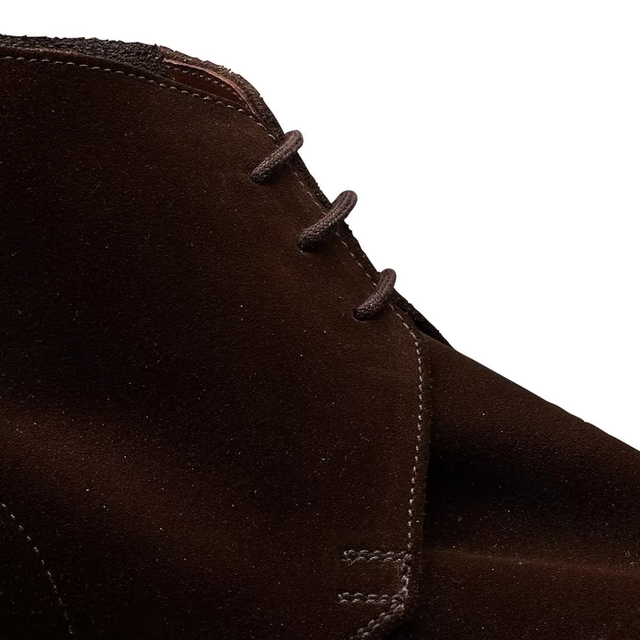 Chukka, an unlined ankle height boot which has become a signature shoe for our European customers. Made from the finest dark brown suede with single leather soles. From the Men’s Main Collection.
